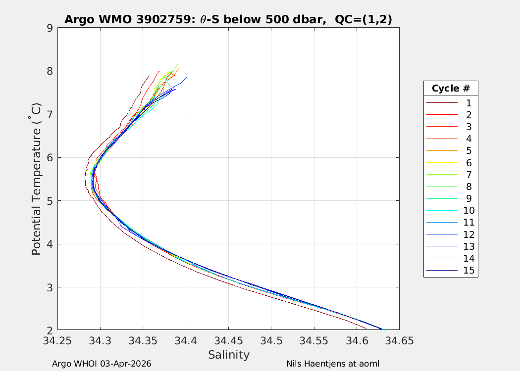 | WMO: #6999993 DAC: aoml PI: JOSH K. WILLIS ALTO: #11699 RBR_ARGO3: #207563 RBR_PRES_A: #207563 Altimeter Comparison (IFREMER) EuroArgo Link | ![]() |