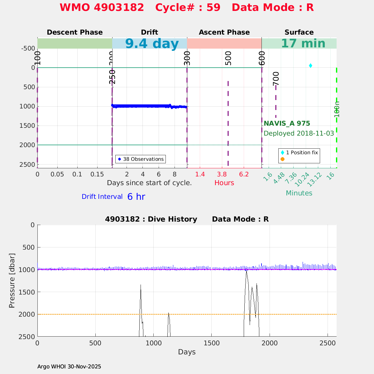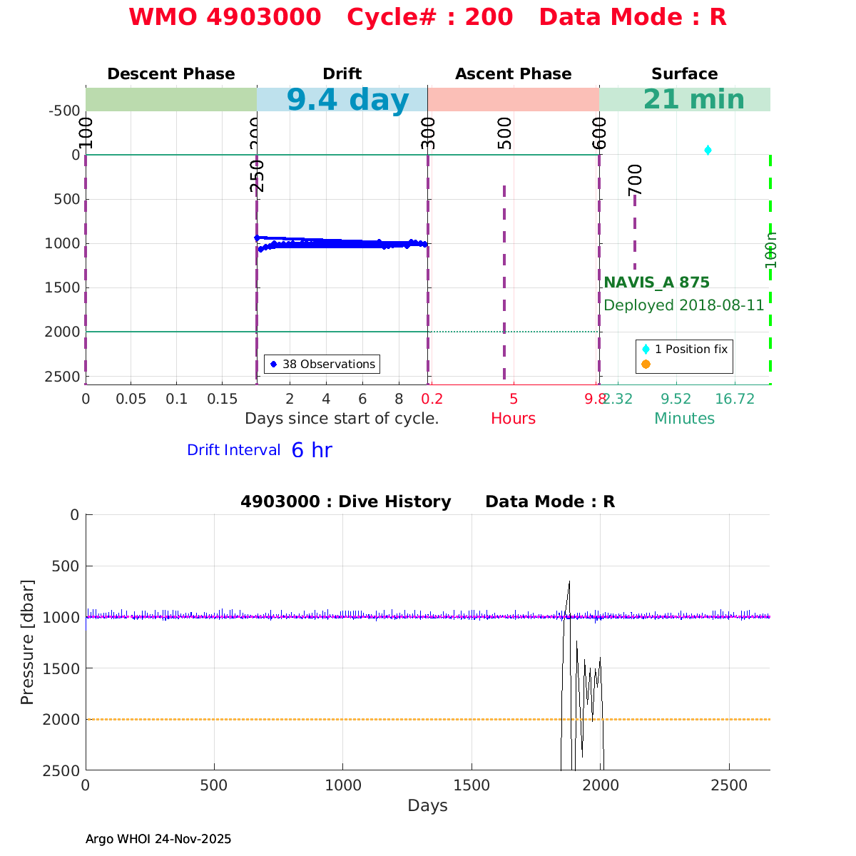 | WMO: #4903028 DAC: aoml PI: GREGORY C. JOHNSON NAVIS_A: #900 SBE41CP: #10069 DRUCK_2900PSIA: #10717936 Altimeter Comparison (IFREMER) EuroArgo Link | ![]() |