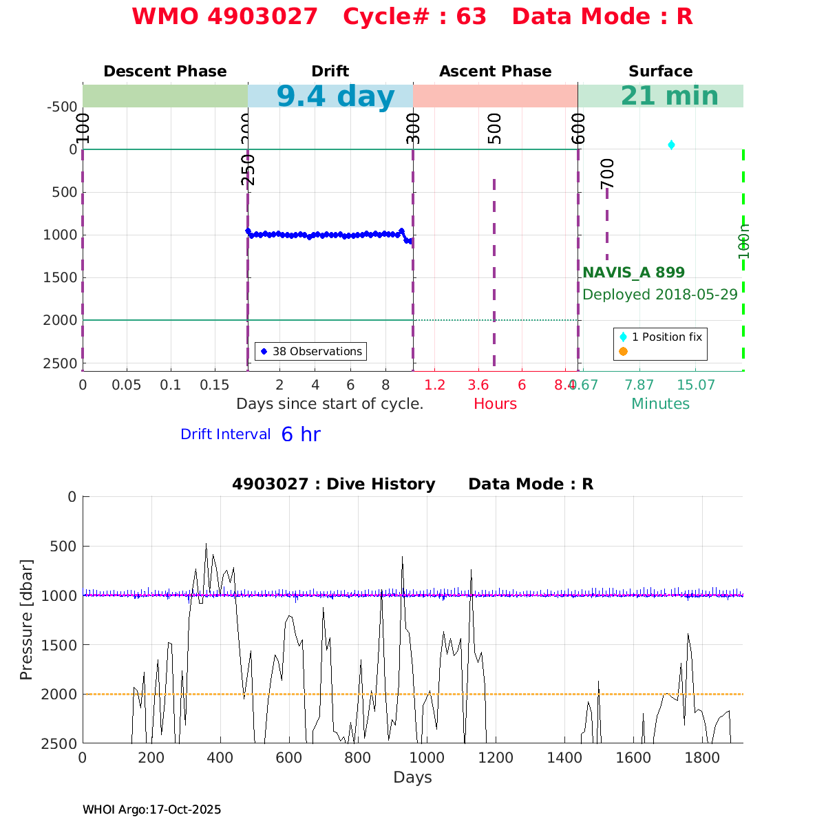| WMO: #4903027 DAC: aoml PI: GREGORY C. JOHNSON NAVIS_A: #899 SBE41CP_V7.2.5: #10054 DRUCK_2900PSIA: #10723510 Altimeter Comparison (IFREMER) EuroArgo Link | ![]() |