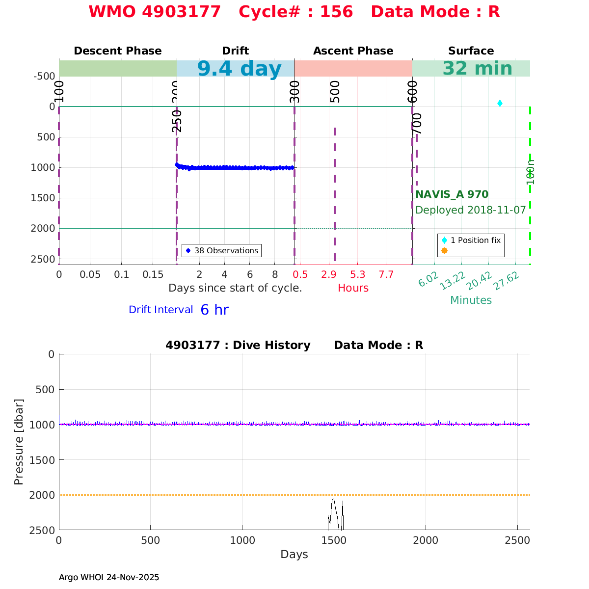 | WMO: #4903177 DAC: aoml PI: GREGORY C. JOHNSON NAVIS_A: #970 SBE41CP: #11046 DRUCK_2900PSIA: #10953802 Altimeter Comparison (IFREMER) EuroArgo Link | ![]() |