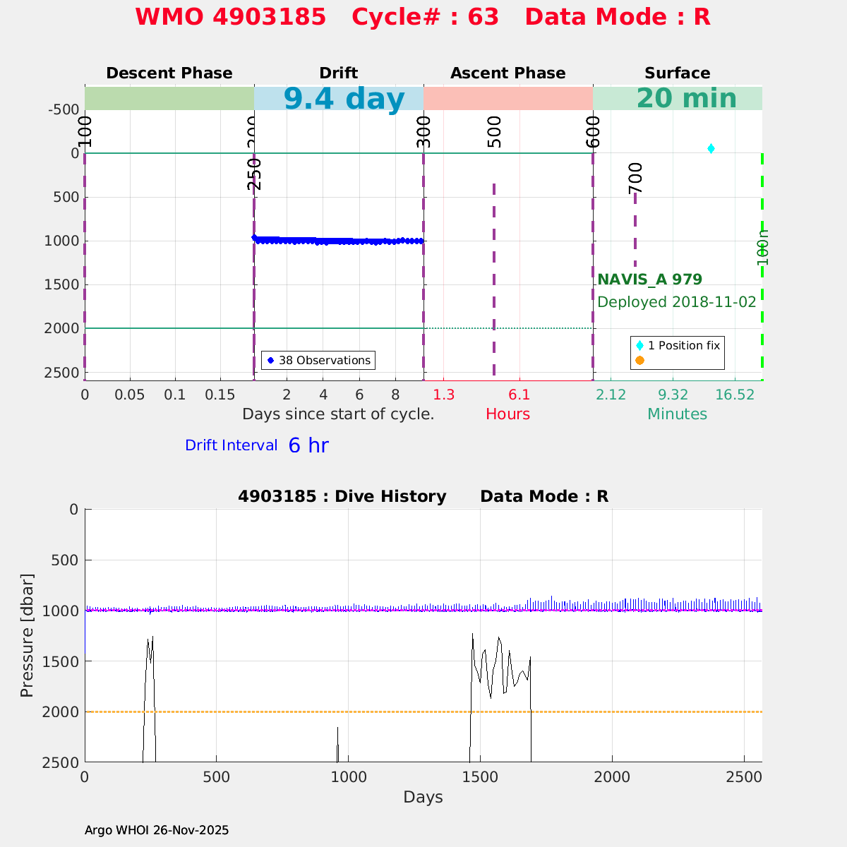 | WMO: #4903185 DAC: aoml PI: GREGORY C. JOHNSON NAVIS_A: #979 SBE41CP: #11065 DRUCK_2900PSIA: #10963025 Altimeter Comparison (IFREMER) EuroArgo Link | ![]() |