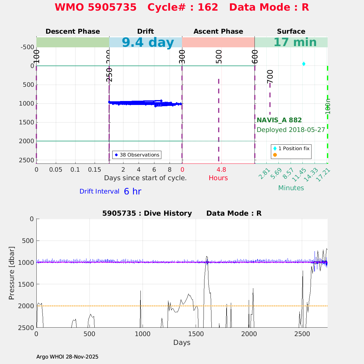 | WMO: #3901305 DAC: aoml PI: GREGORY C. JOHNSON NAVIS_A: #872 SBE41CP_V7.2.5: #09962 DRUCK_2900PSIA: #10709842 Altimeter Comparison (IFREMER) EuroArgo Link | ![]() |