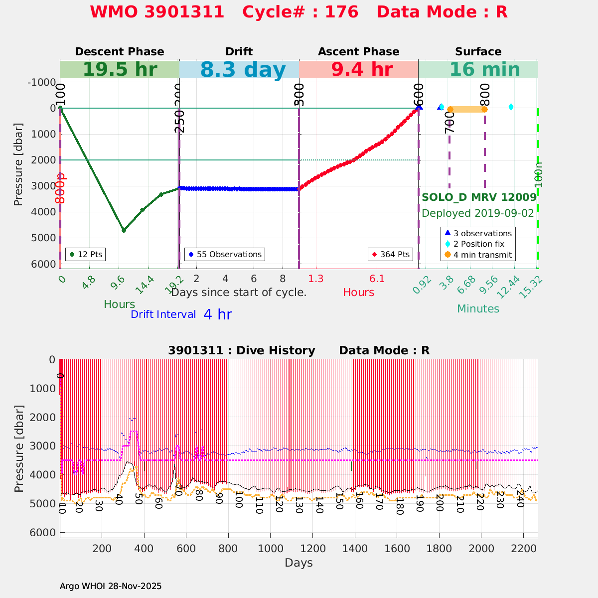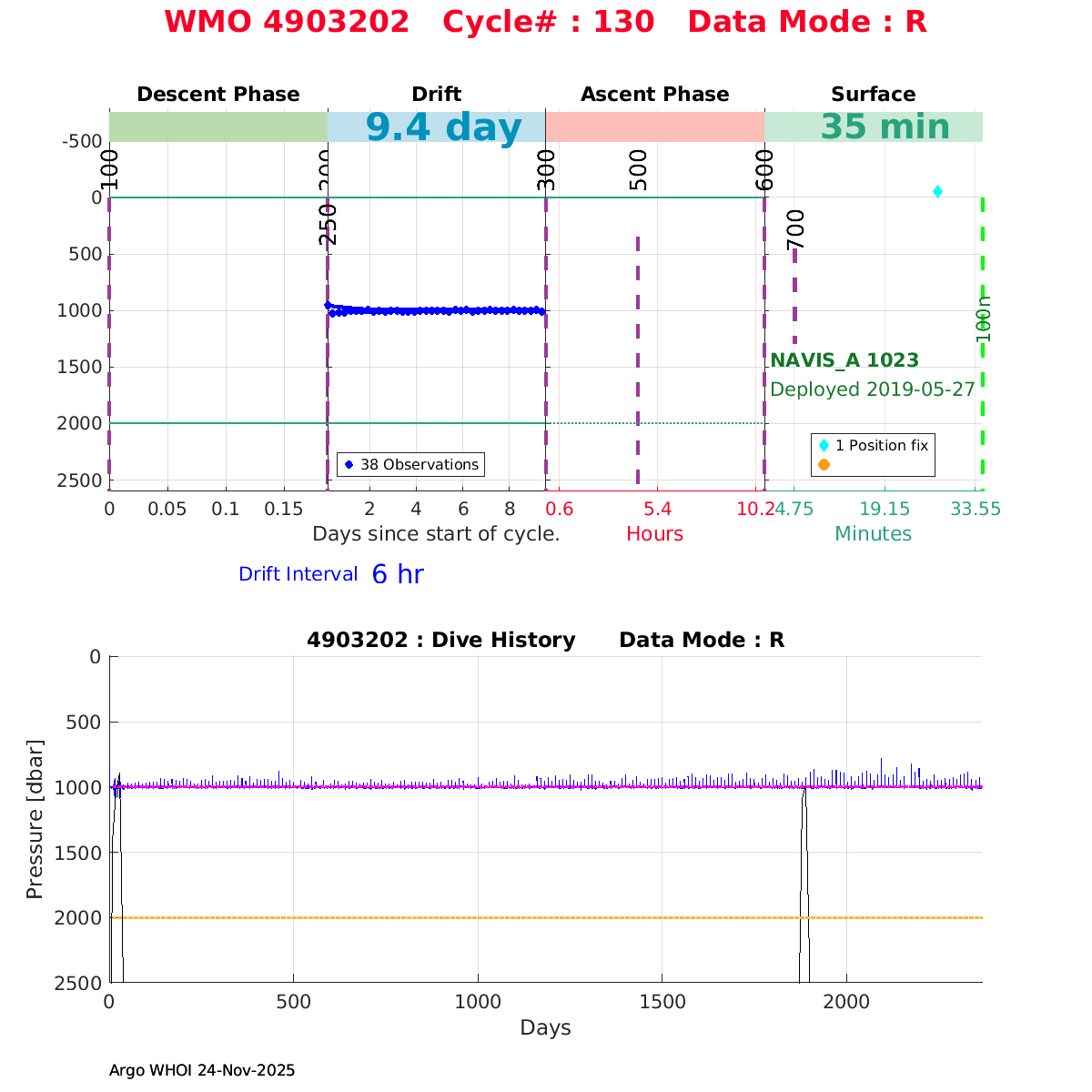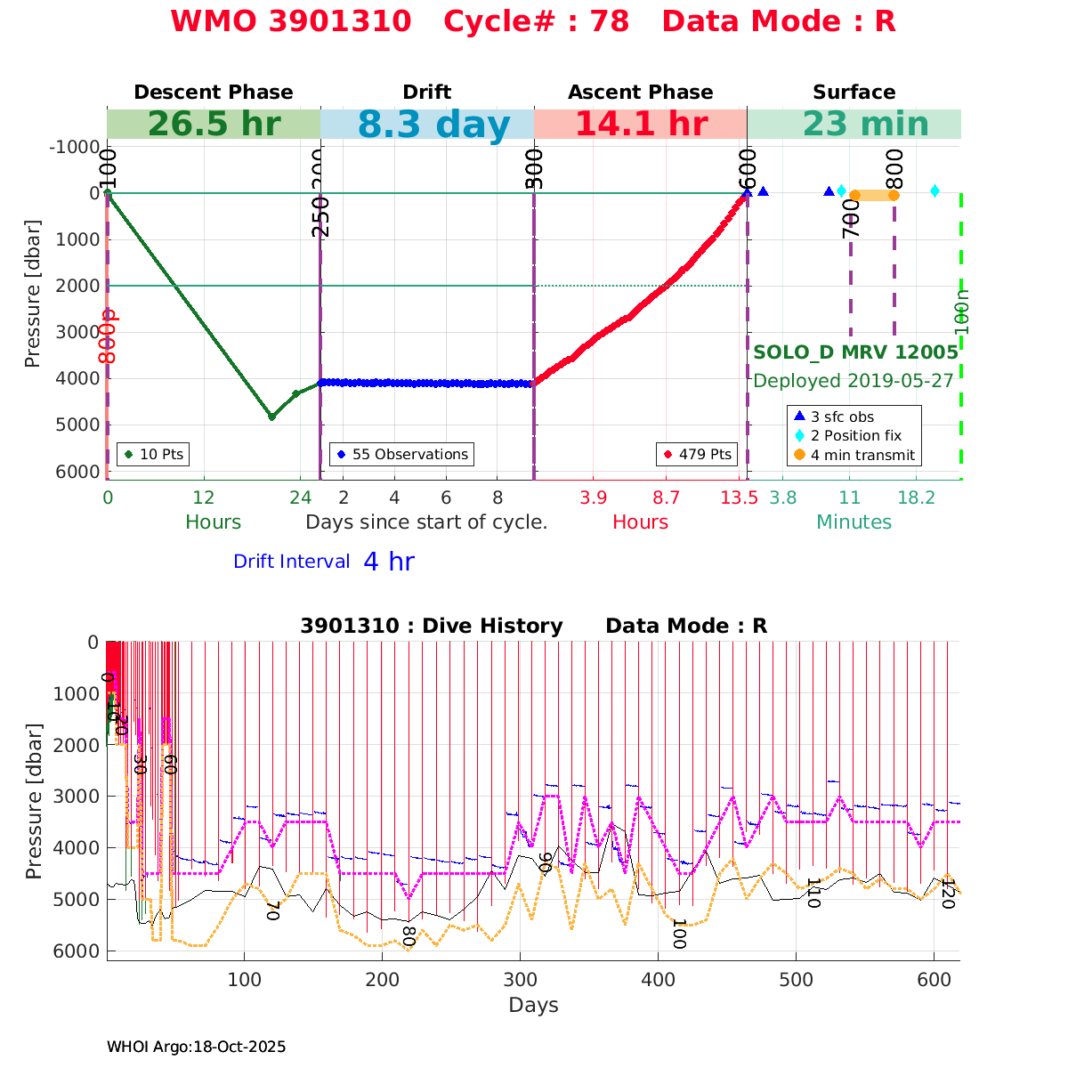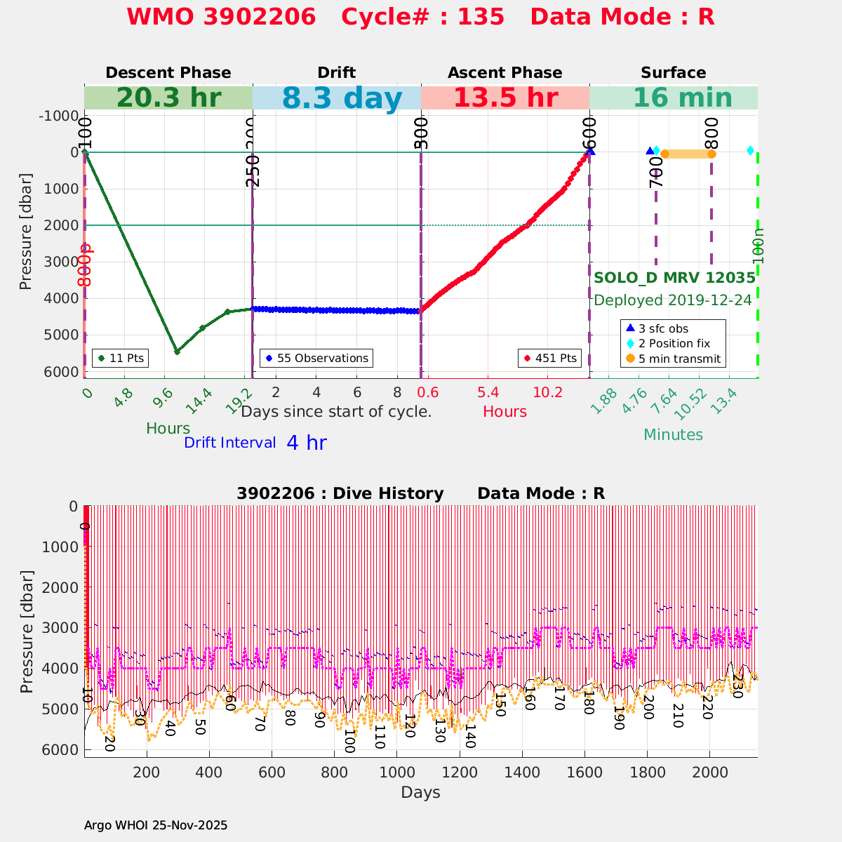 | WMO: #3902205 DAC: aoml PI: GREGORY C. JOHNSON SOLO_D MRV: #12034 SBE61: #5684 KISTLER_10153PSIA: #5234858 Altimeter Comparison (IFREMER) EuroArgo Link | ![]() |