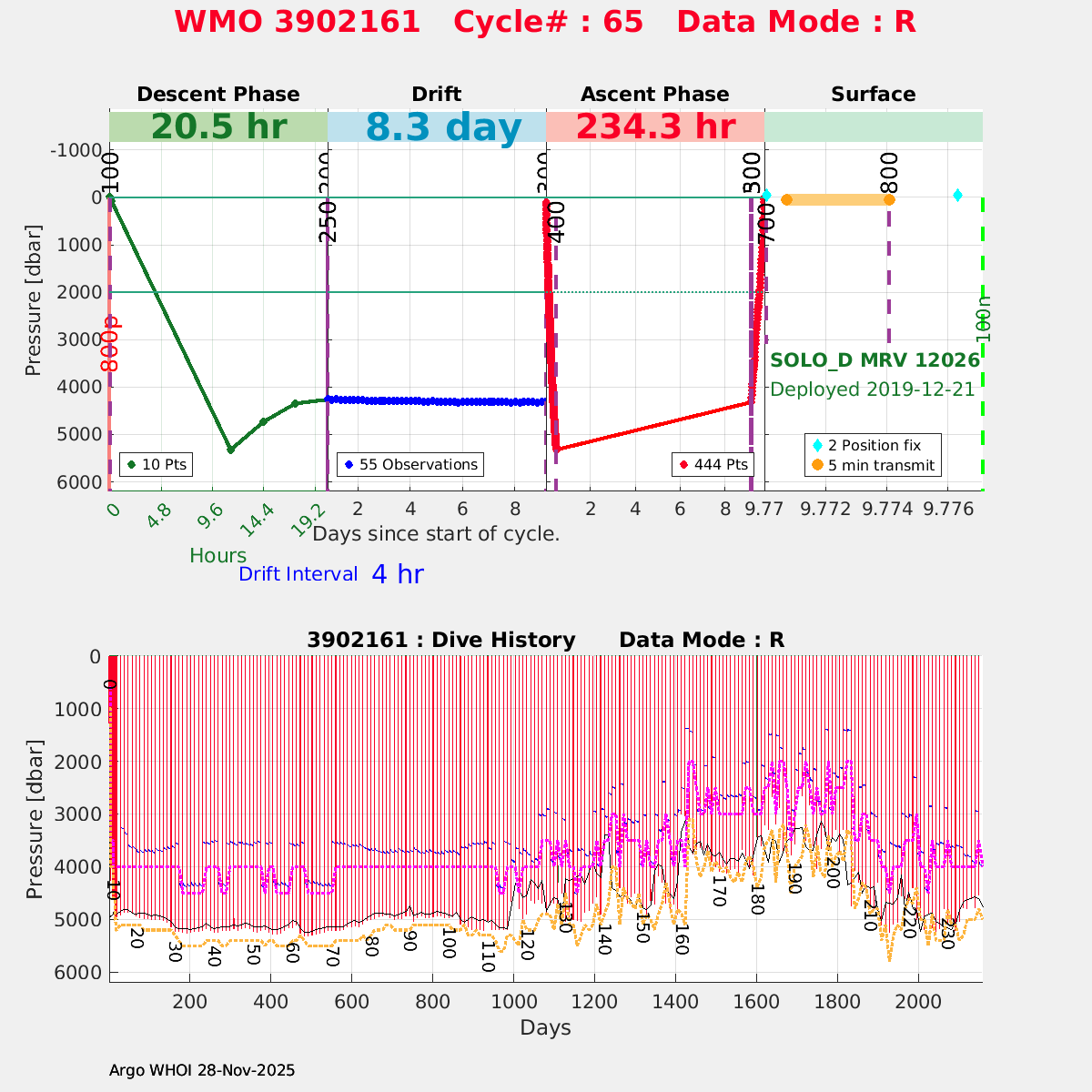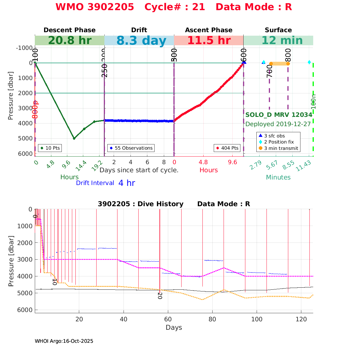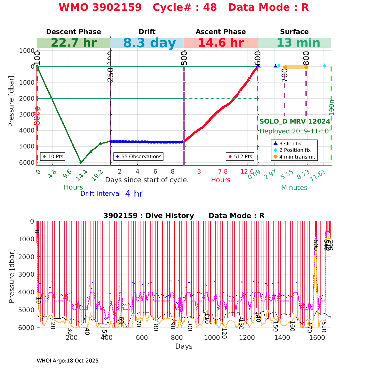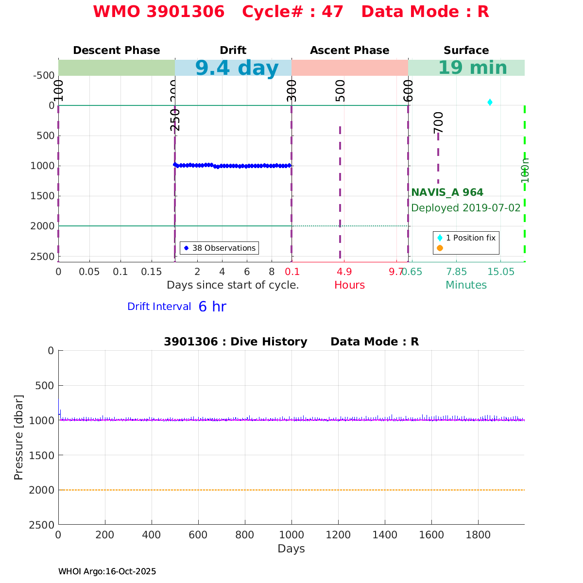 | WMO: #3902205 DAC: aoml PI: GREGORY C. JOHNSON SOLO_D MRV: #12034 SBE61: #5684 KISTLER_10153PSIA: #5234858 Altimeter Comparison (IFREMER) EuroArgo Link | ![]() |