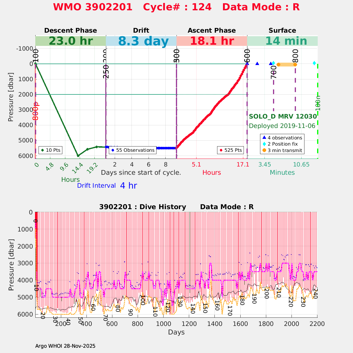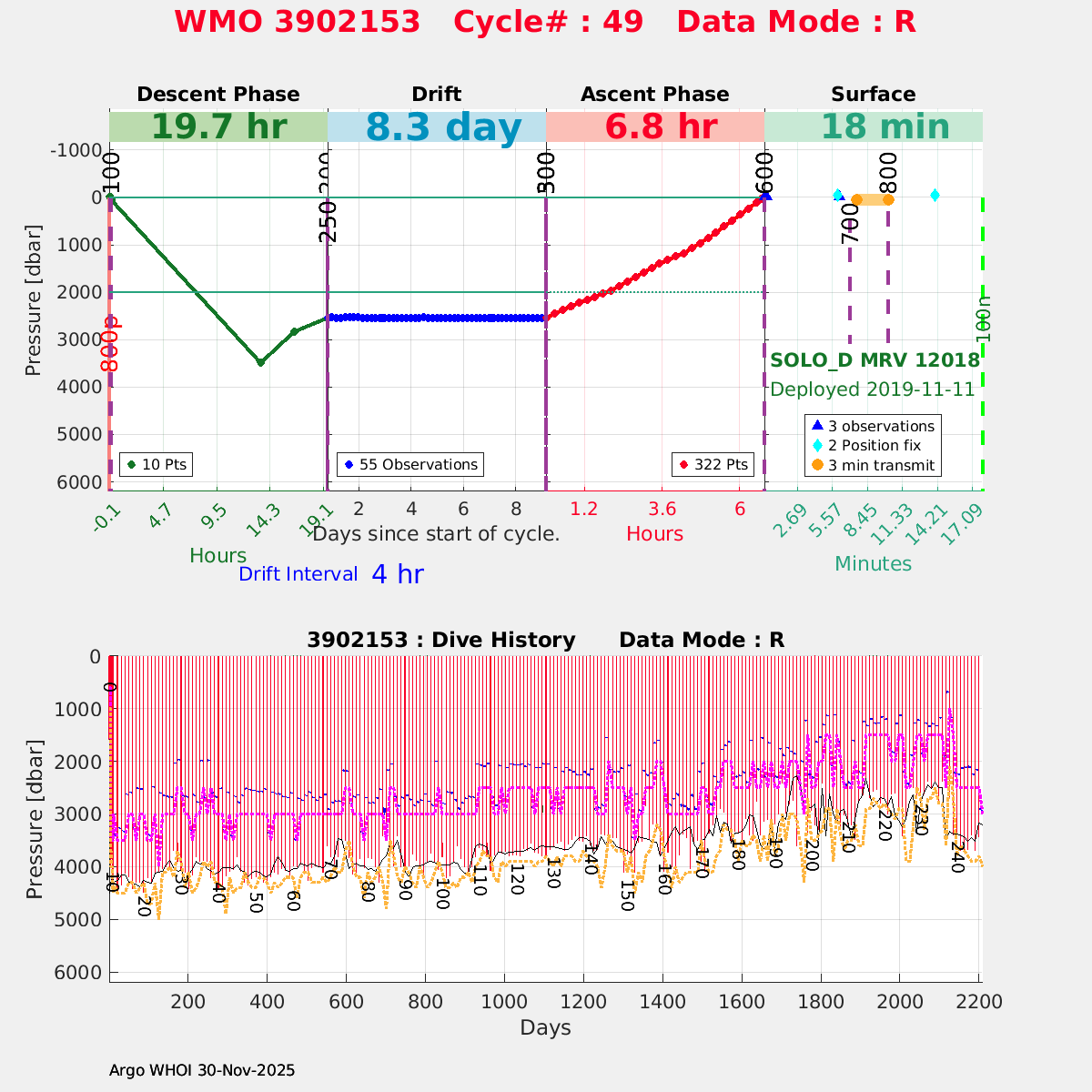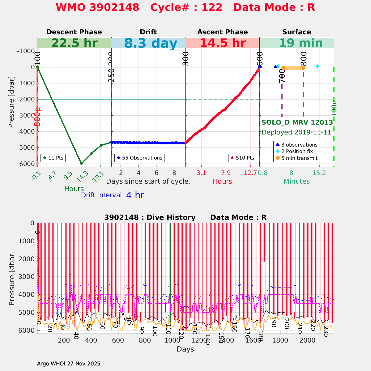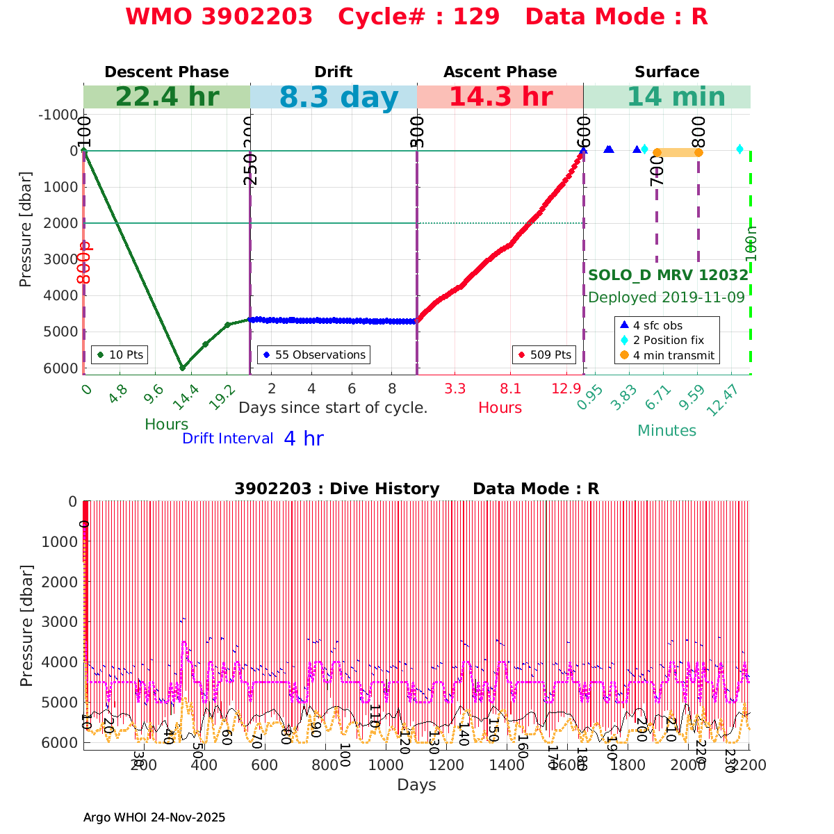 | WMO: #3902205 DAC: aoml PI: GREGORY C. JOHNSON SOLO_D MRV: #12034 SBE61: #5684 KISTLER_10153PSIA: #5234858 Altimeter Comparison (IFREMER) EuroArgo Link | ![]() |