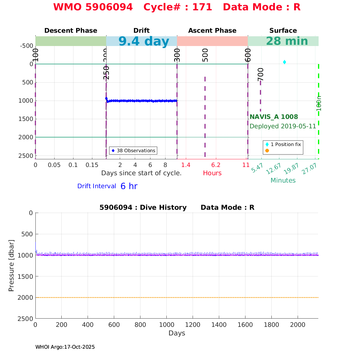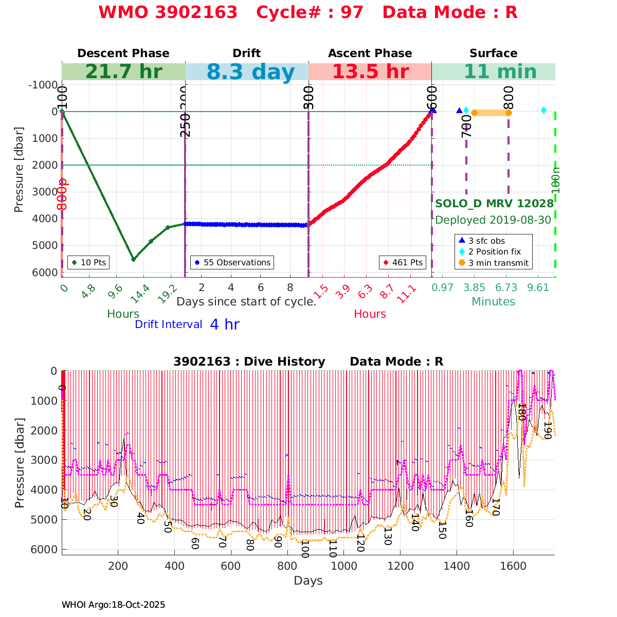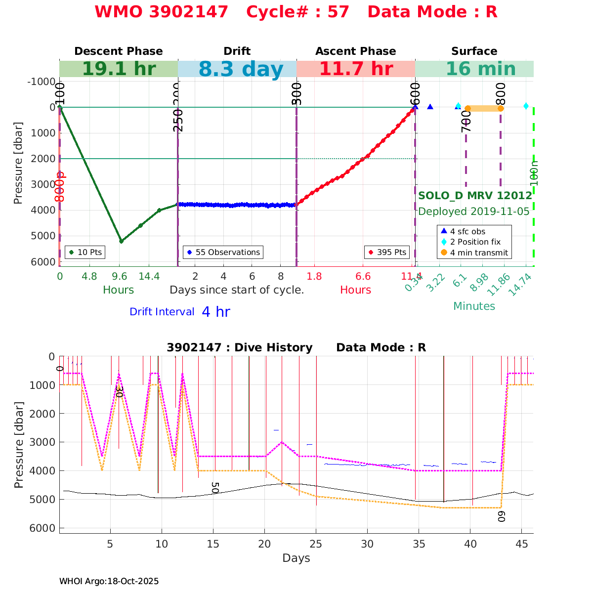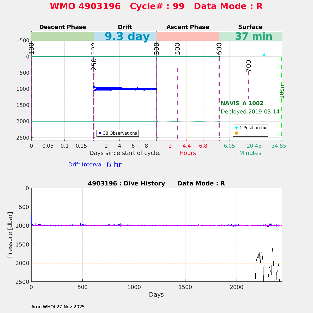 | WMO: #3902205 DAC: aoml PI: GREGORY C. JOHNSON SOLO_D MRV: #12034 SBE61: #5684 KISTLER_10153PSIA: #5234858 Altimeter Comparison (IFREMER) EuroArgo Link | ![]() |