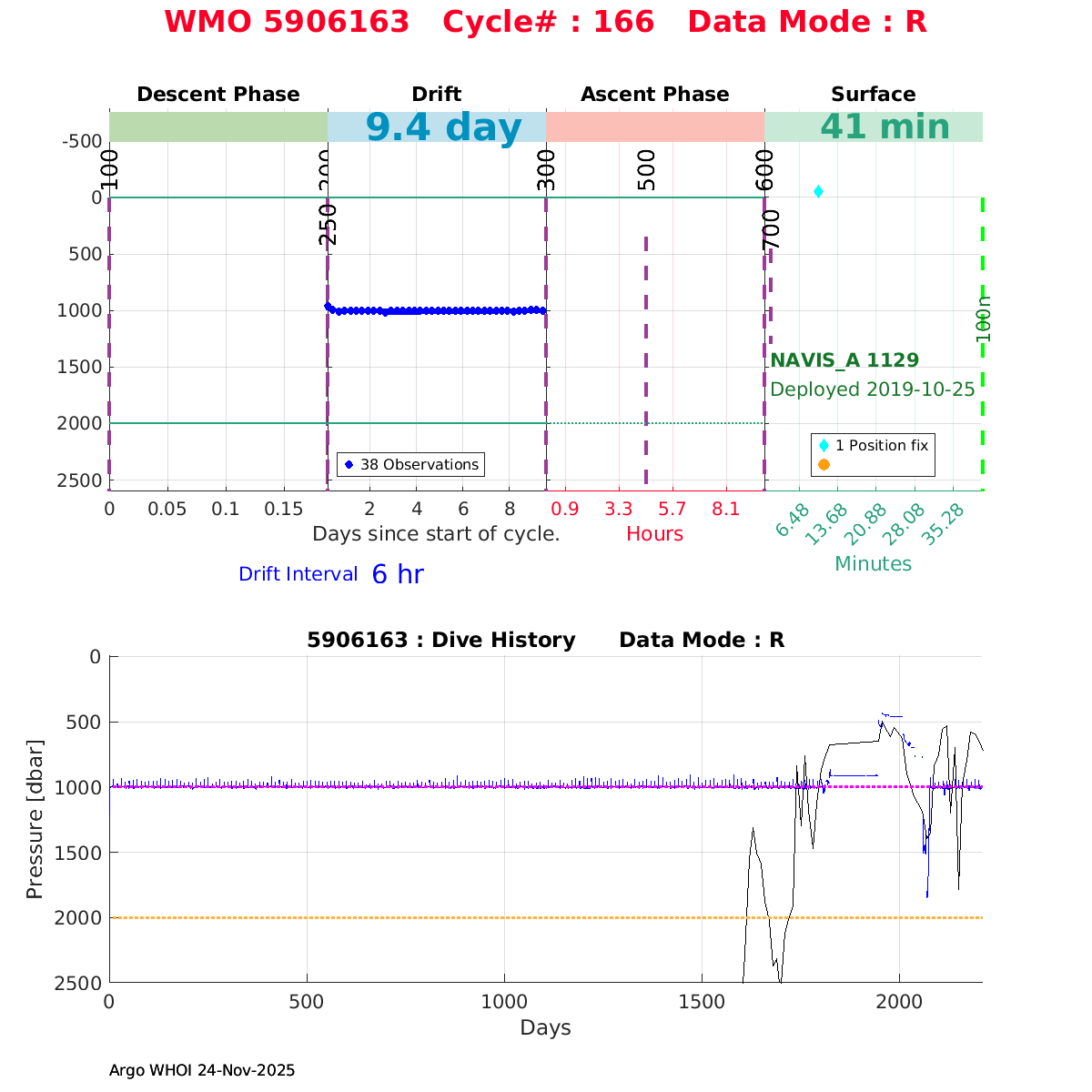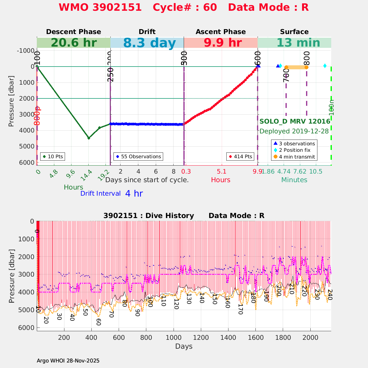 | WMO: #3902163 DAC: aoml PI: GREGORY C. JOHNSON SOLO_D MRV: #12028 SBE61: #5646 KISTLER_10153PSIA: #5276575 Altimeter Comparison (IFREMER) EuroArgo Link | ![]() |