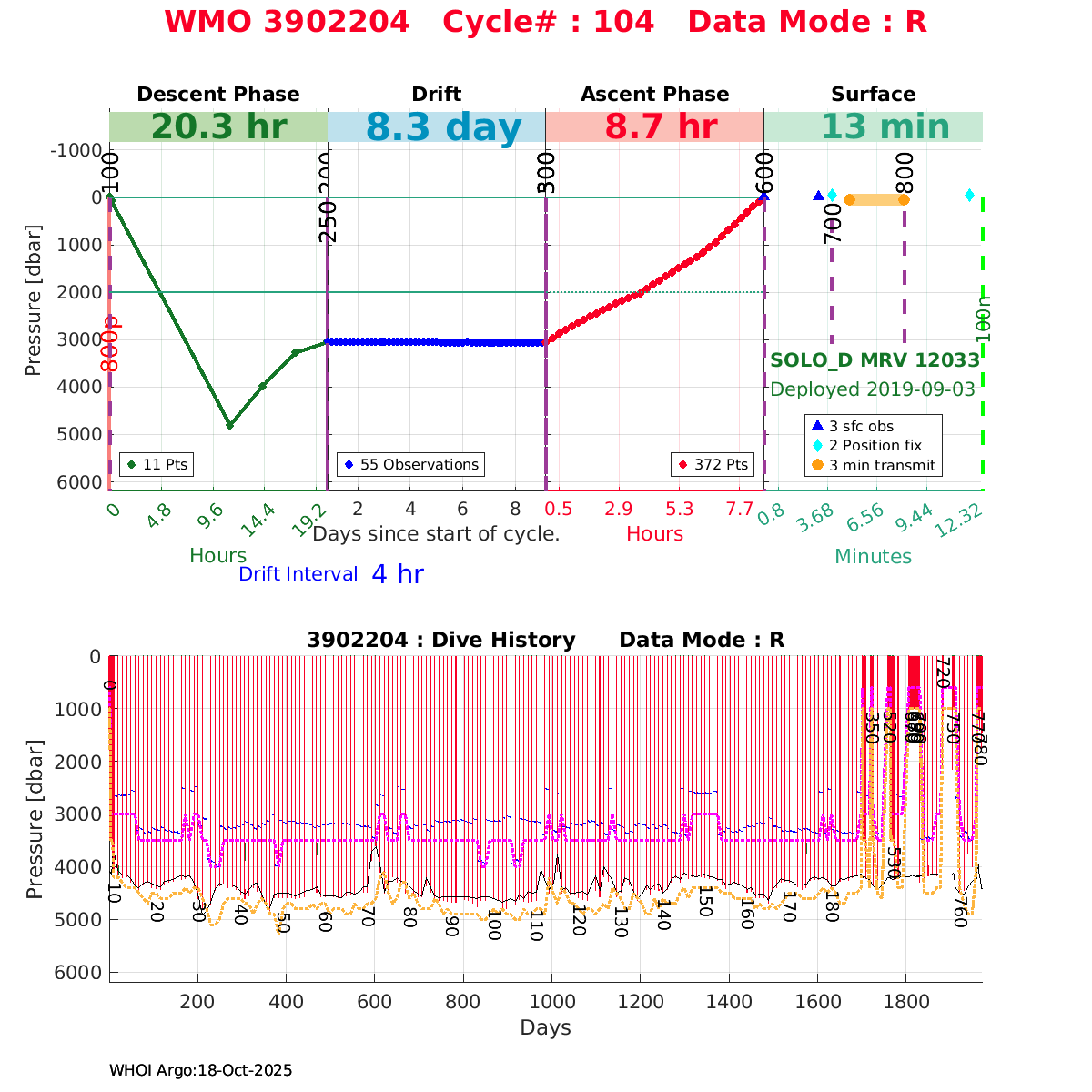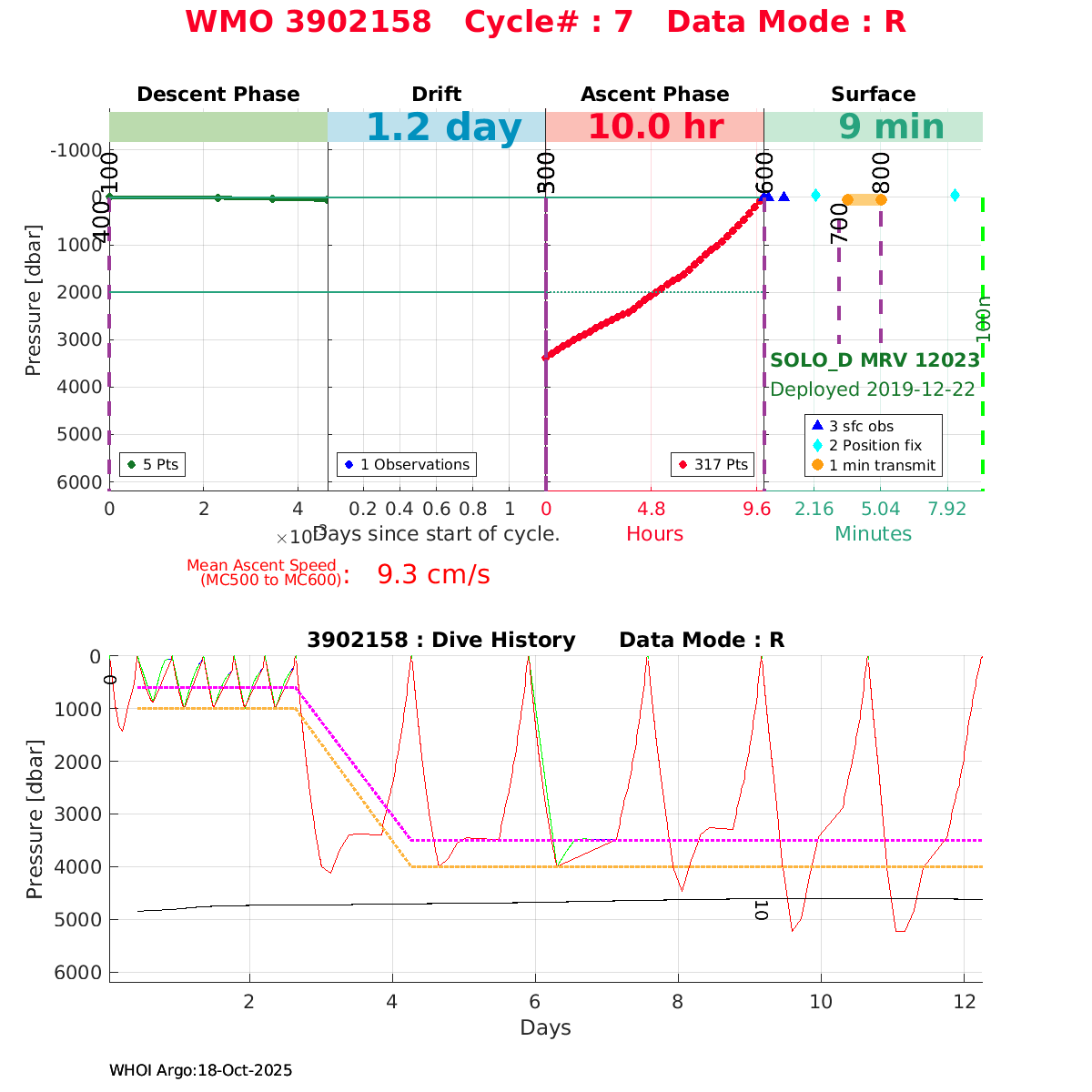 | WMO: #3902218 DAC: aoml PI: GREGORY C. JOHNSON SOLO_D MRV: #12012 SBE61: #5708 KISTLER_10153PSIA: #5251169 Altimeter Comparison (IFREMER) EuroArgo Link | ![]() |