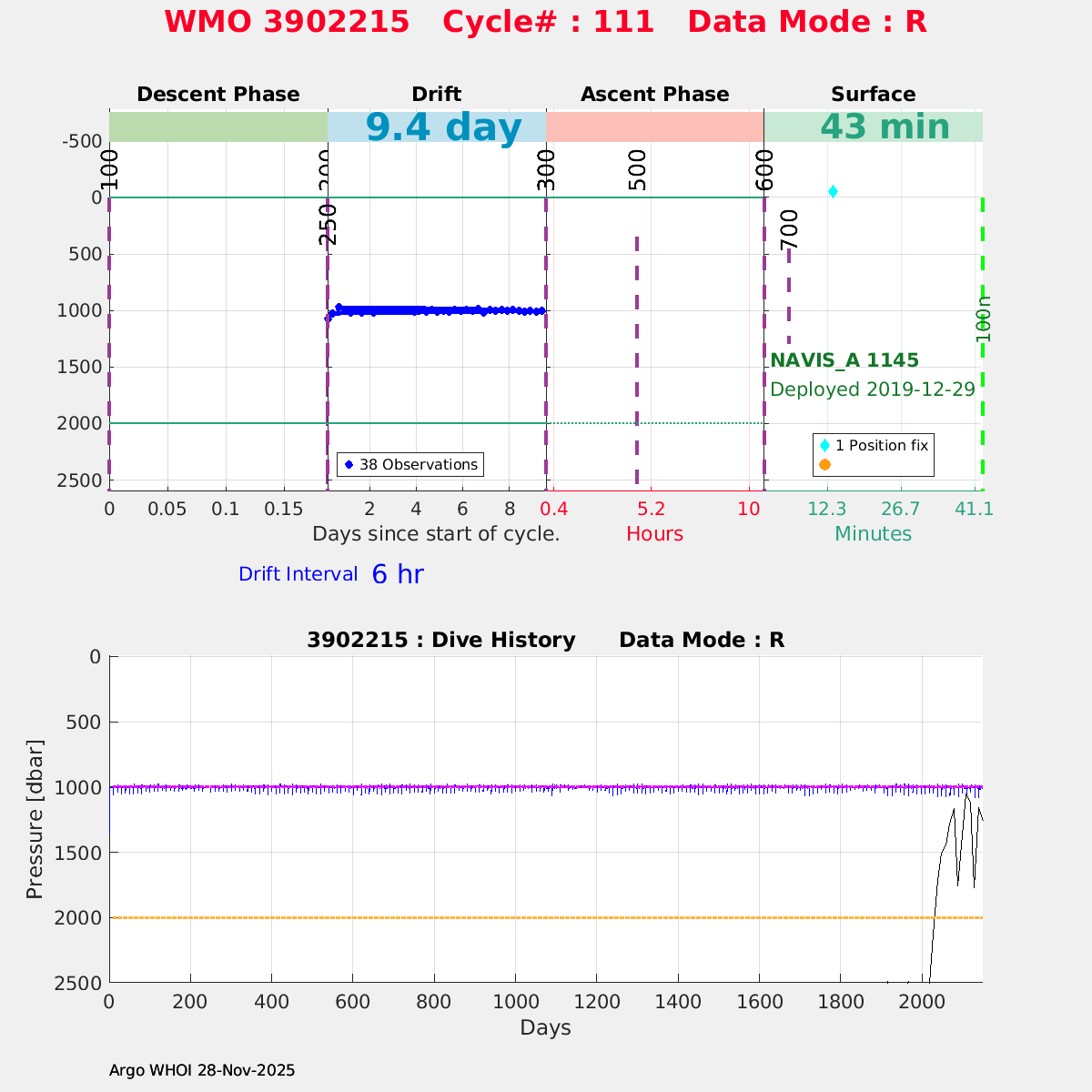 | WMO: #3902215 DAC: aoml PI: GREGORY C. JOHNSON NAVIS_A: #1145 SBE41CP: #12136 DRUCK_2900PSIA: #11309677 Altimeter Comparison (IFREMER) EuroArgo Link | ![]() |