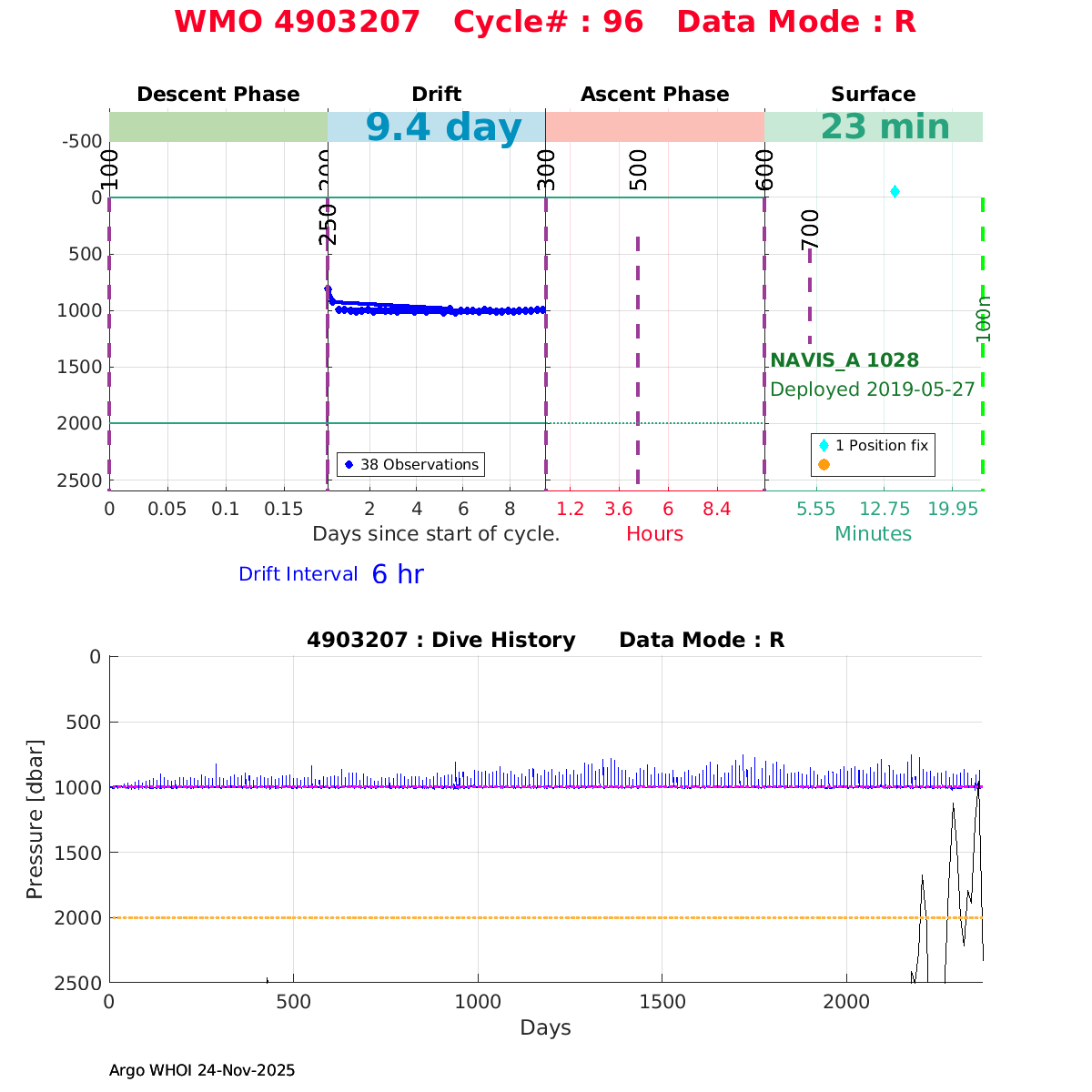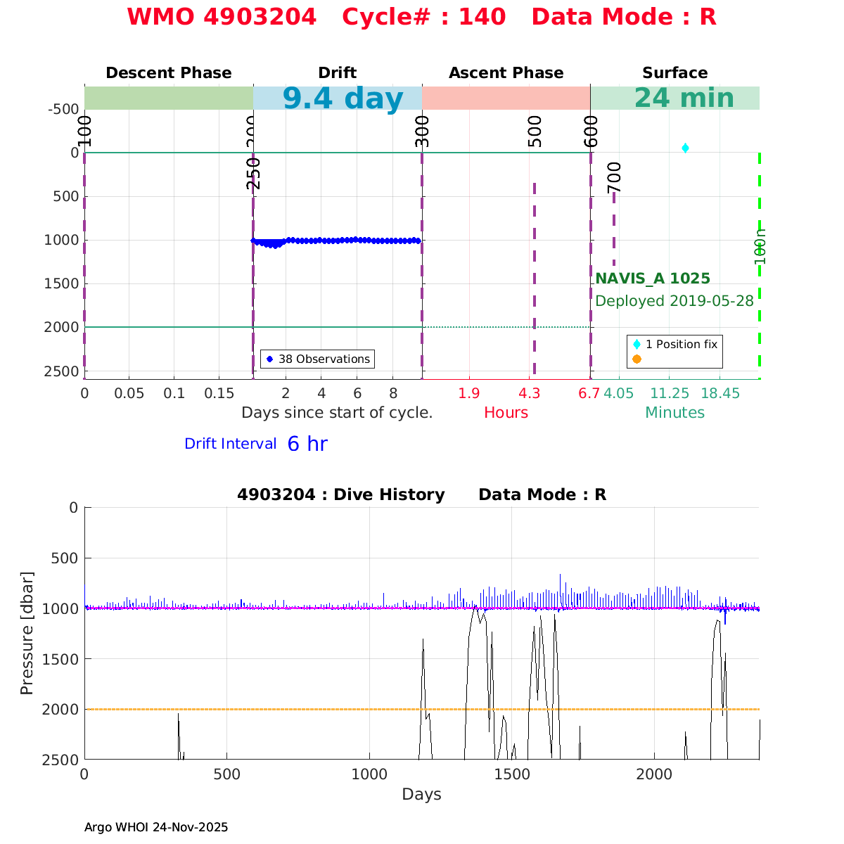 | WMO: #4903206 DAC: aoml PI: GREGORY C. JOHNSON NAVIS_A: #1027 SBE41CP: #11150 DRUCK_2900PSIA: #10965093 Altimeter Comparison (IFREMER) EuroArgo Link | ![]() |