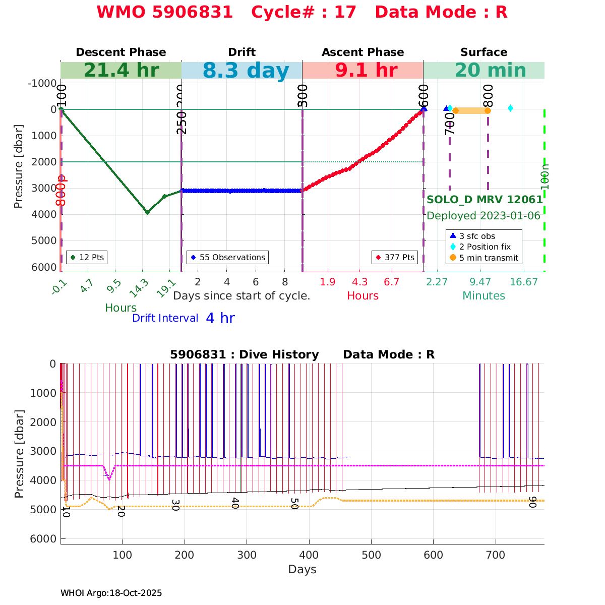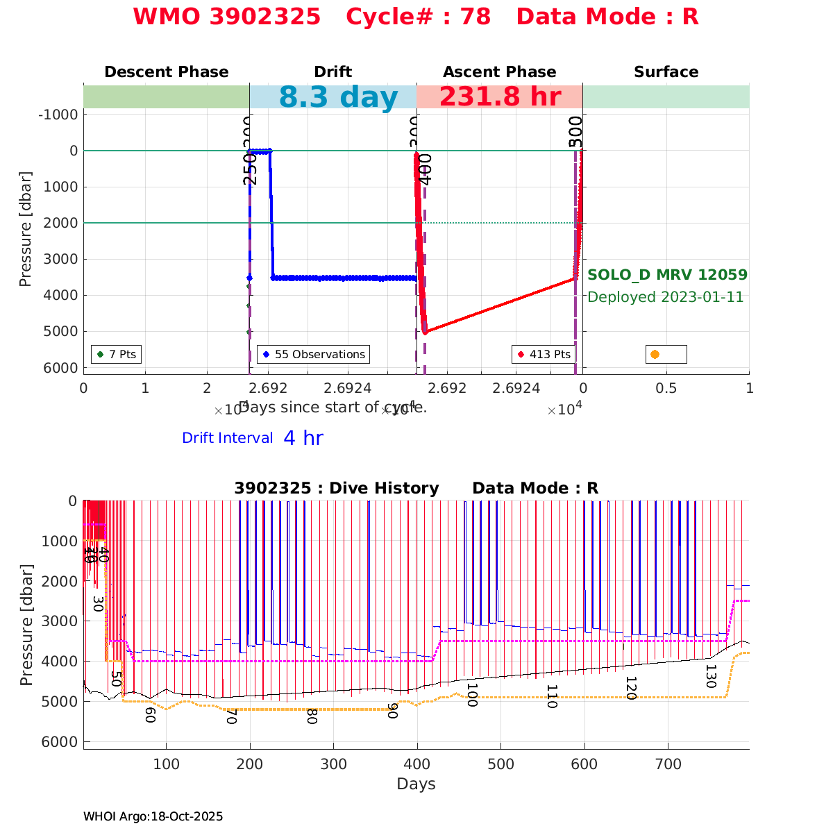 | WMO: #3902328 DAC: aoml PI: GREGORY C. JOHNSON SOLO_D MRV: #12064 SBE61: #5803 KISTLER_10153PSIA: #5505477 Altimeter Comparison (IFREMER) EuroArgo Link | ![]() |