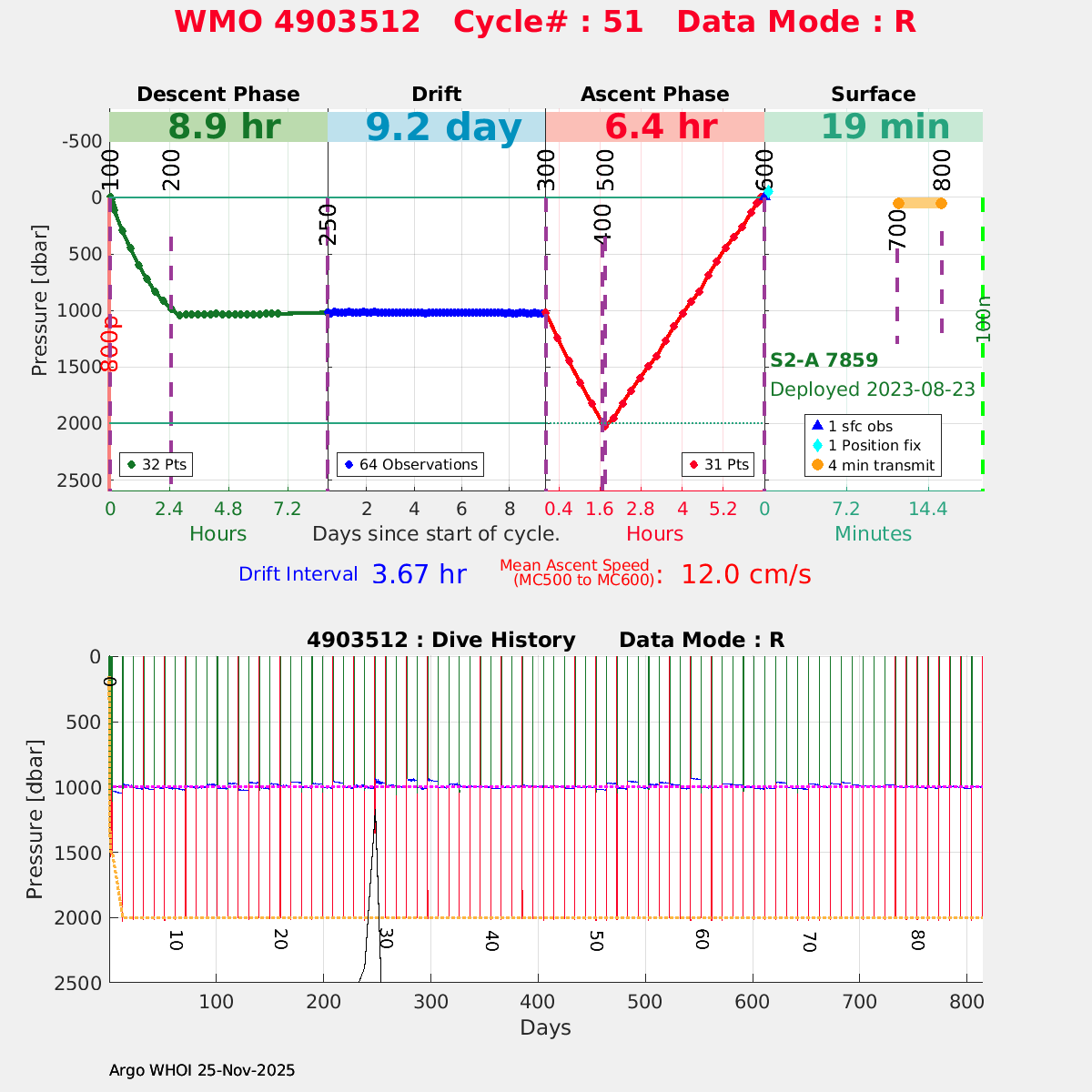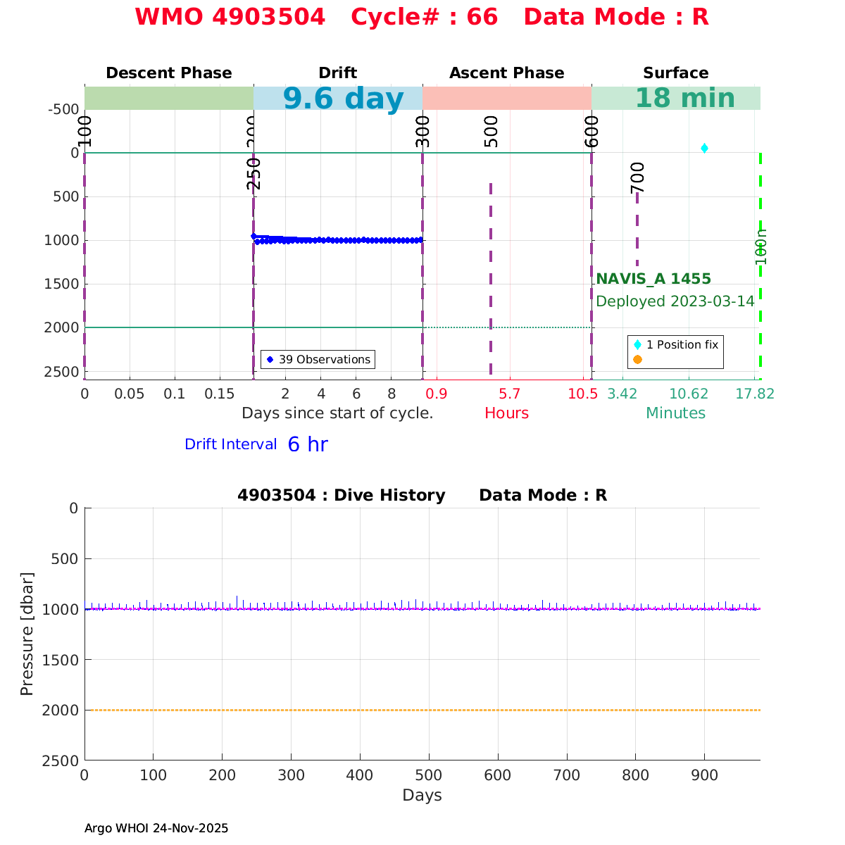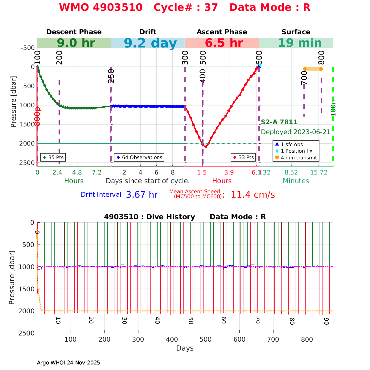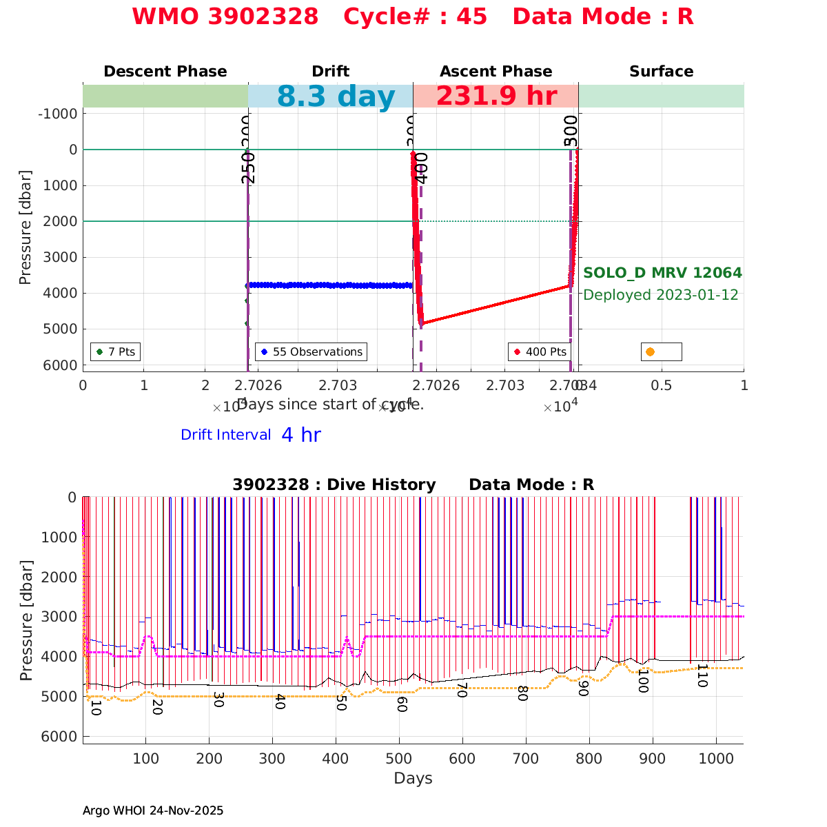 | WMO: #4903508 DAC: aoml PI: GREGORY C. JOHNSON ALTO: #11529 RBR_ARGO3: #211323 RBR_PRES_A: #211323 Altimeter Comparison (IFREMER) EuroArgo Link | ![]() |