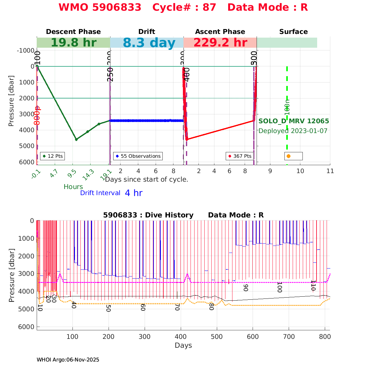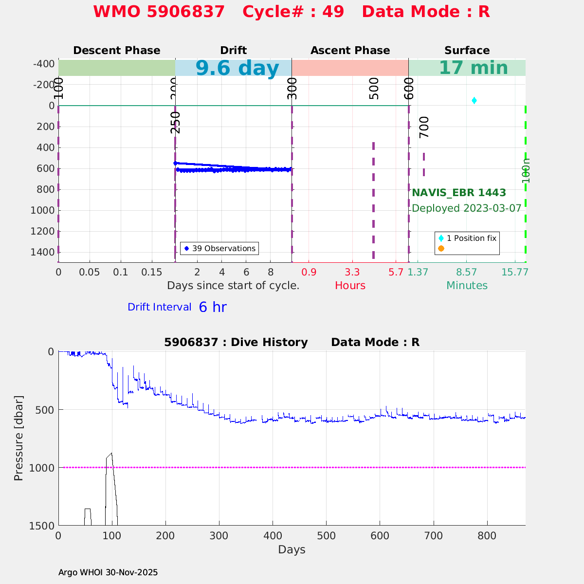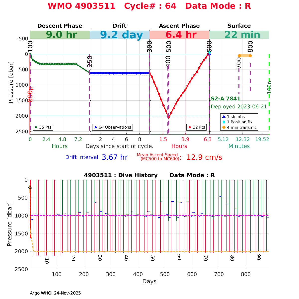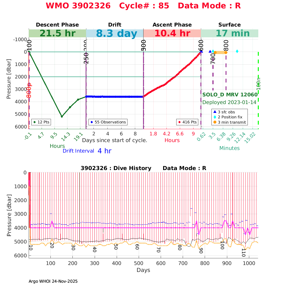 | WMO: #4903508 DAC: aoml PI: GREGORY C. JOHNSON ALTO: #11529 RBR_ARGO3: #211323 RBR_PRES_A: #211323 Altimeter Comparison (IFREMER) EuroArgo Link | ![]() |