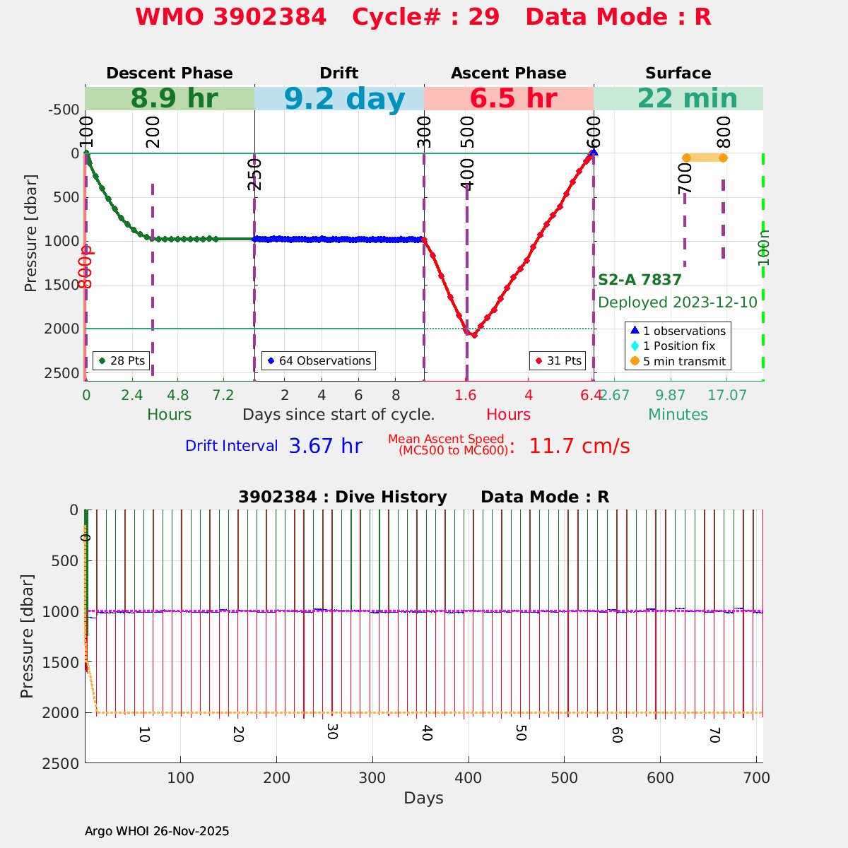 | WMO: #3902315 DAC: aoml PI: GREGORY C. JOHNSON S2-A: #7810 SBE41CP: #17838 DRUCK_2900PSIA: #12193204 Altimeter Comparison (IFREMER) EuroArgo Link | ![]() |