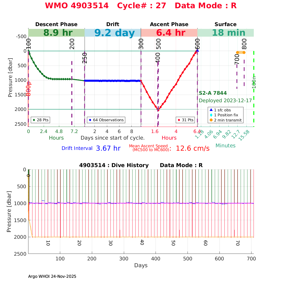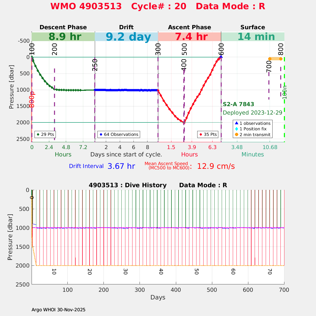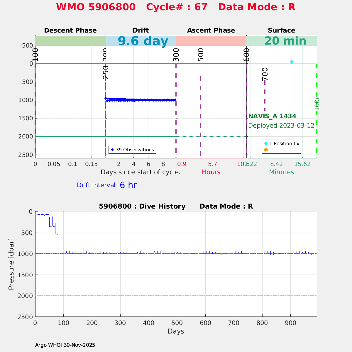 | WMO: #4903514 DAC: aoml PI: GREGORY C. JOHNSON S2-A: #7844 SBE41CP: #18555 DRUCK_2900PSIA: #12143744 Altimeter Comparison (IFREMER) EuroArgo Link | ![]() |