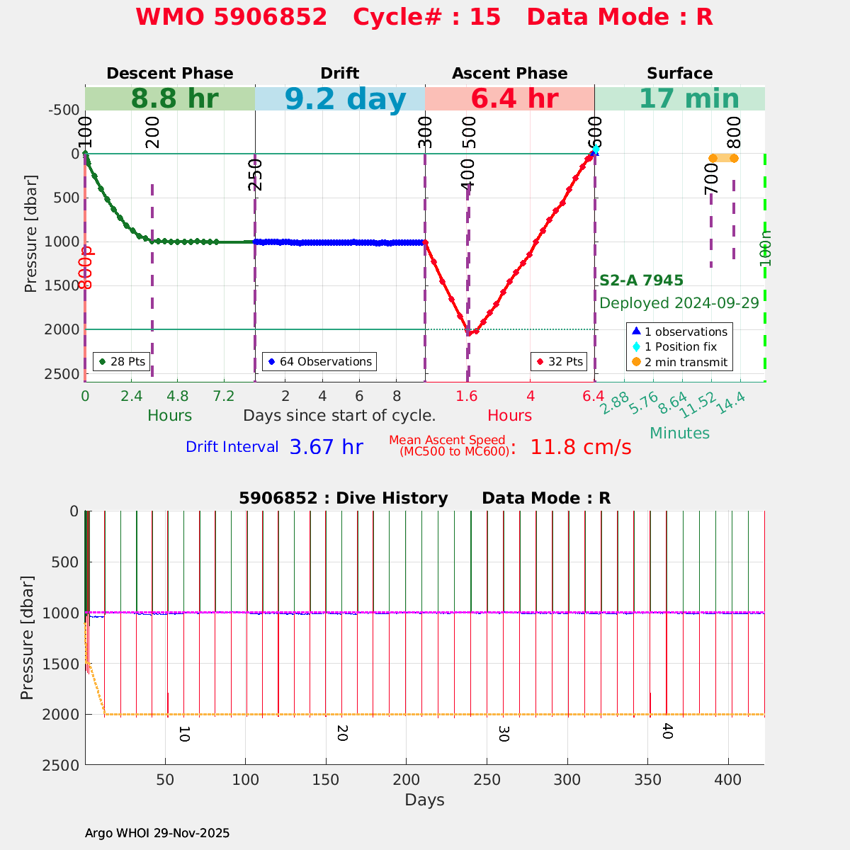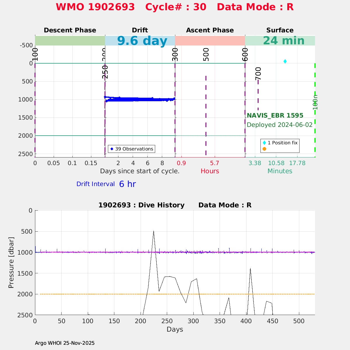 | WMO: #5906859 DAC: aoml PI: GREGORY C. JOHNSON ALTO: #11535 RBR_ARGO3: #201772 RBR_PRES_A: #201772 Altimeter Comparison (IFREMER) EuroArgo Link | n/a | n/a | ![]() |