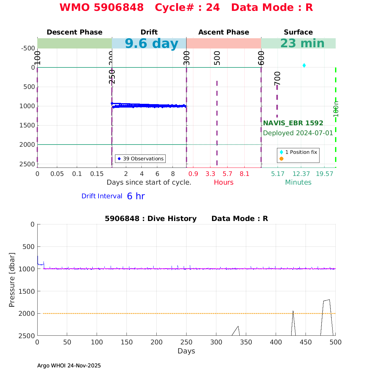 | WMO: #5906874 DAC: aoml PI: GREGORY C. JOHNSON ALTO: #11688 RBR_ARGO3: #232859 RBR_PRES_A: #232859 Altimeter Comparison (IFREMER) EuroArgo Link | n/a | n/a | ![]() |