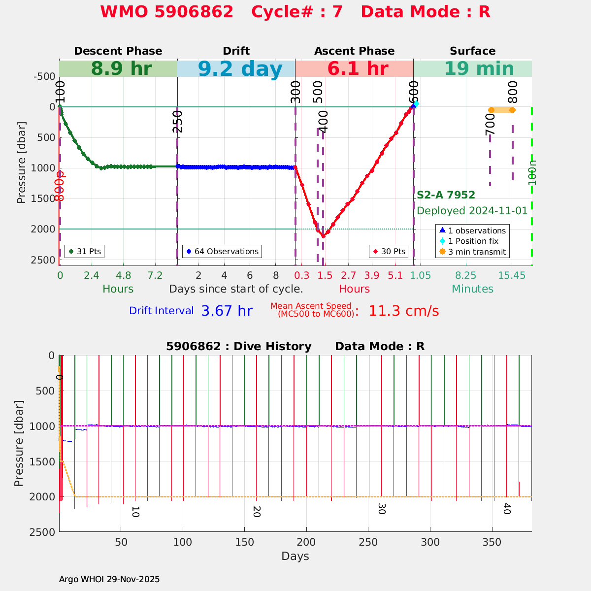 | WMO: #7902258 DAC: aoml PI: GREGORY C. JOHNSON ALTO: #11691 RBR_ARGO3: #235418 RBR_PRES_A: #235418 Altimeter Comparison (IFREMER) EuroArgo Link | ![]() |