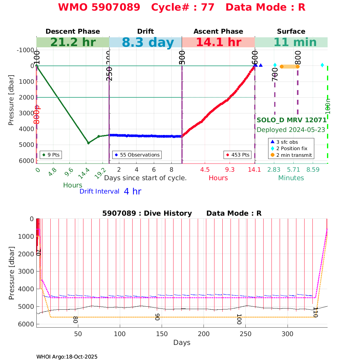 | WMO: #5907089 DAC: aoml PI: GREGORY C. JOHNSON SOLO_D MRV: #12071 SBE61: #5939 KISTLER_10153PSIA: #5831335 Altimeter Comparison (IFREMER) EuroArgo Link | n/a | n/a | ![]() |