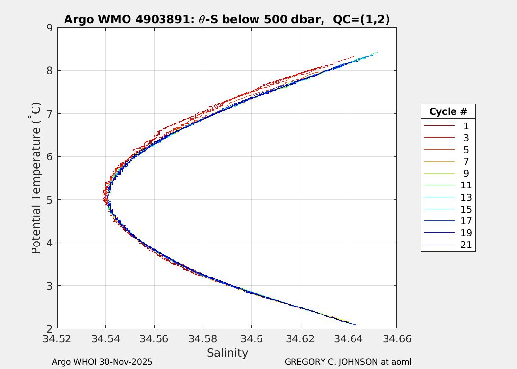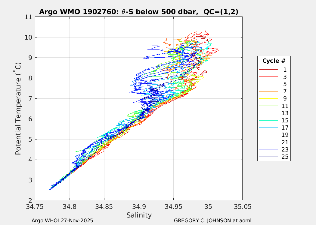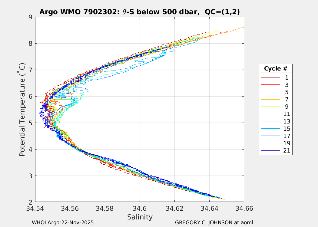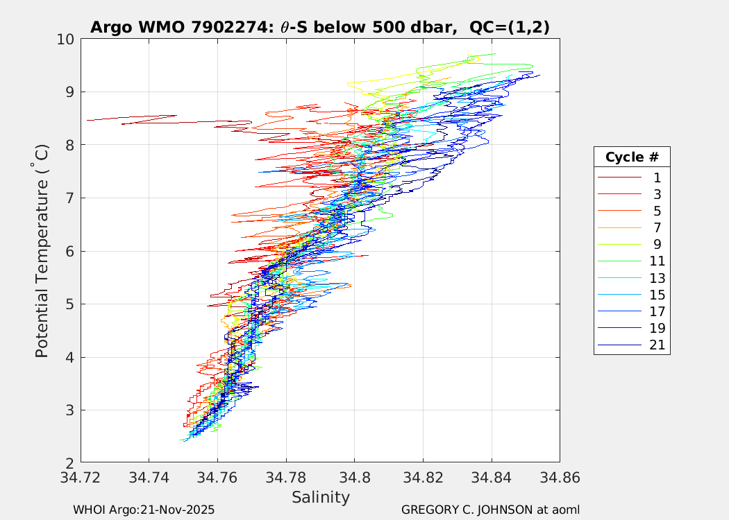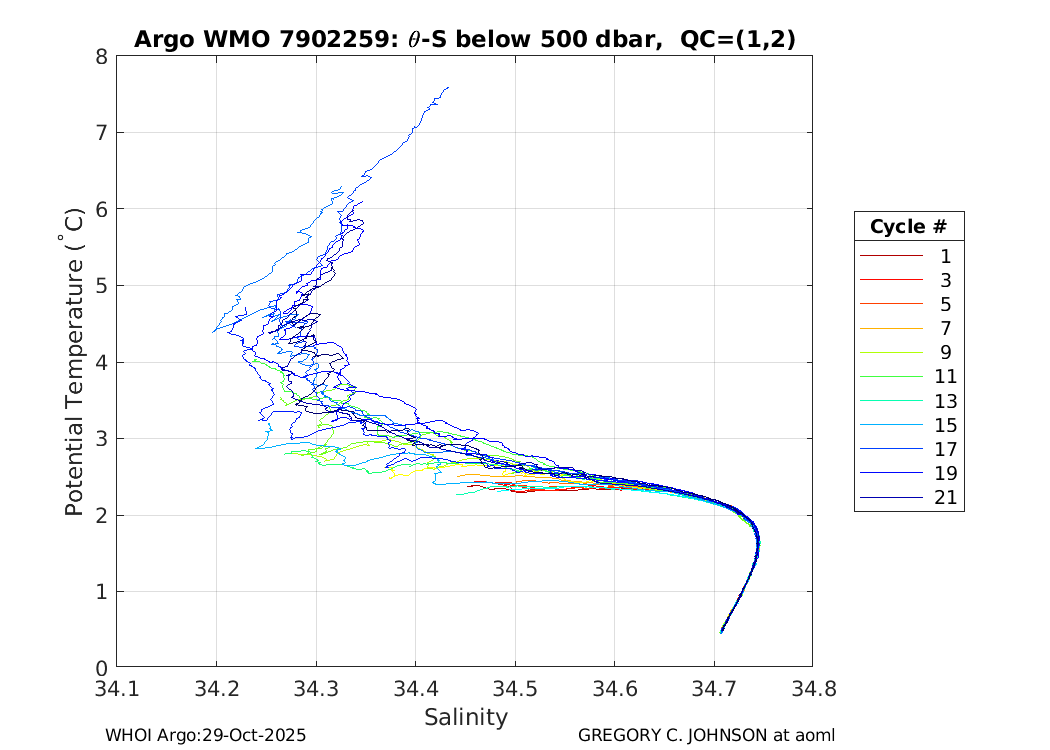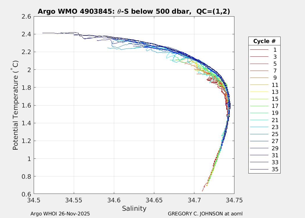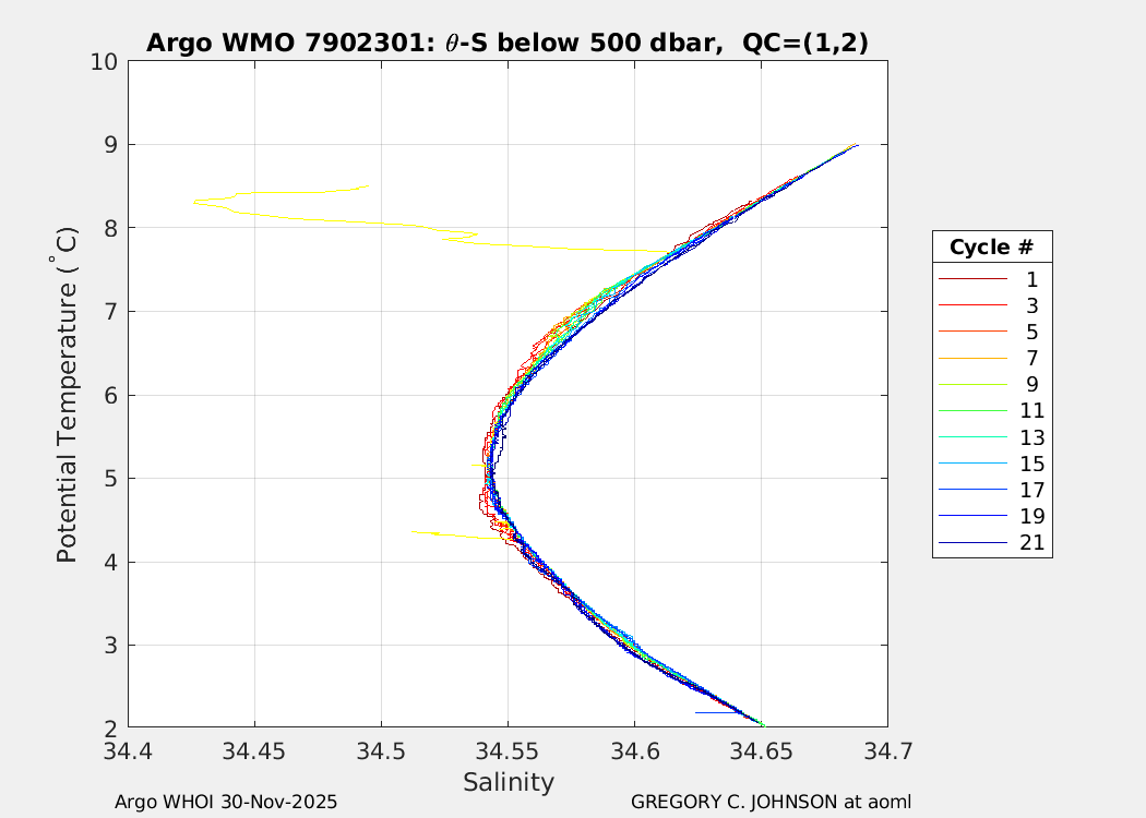 | WMO: #4903845 DAC: aoml PI: GREGORY C. JOHNSON S2-A: #7948 SBE41CP: #19463 DRUCK_2900PSIA: #12197057 Altimeter Comparison (IFREMER) EuroArgo Link | ![]() |