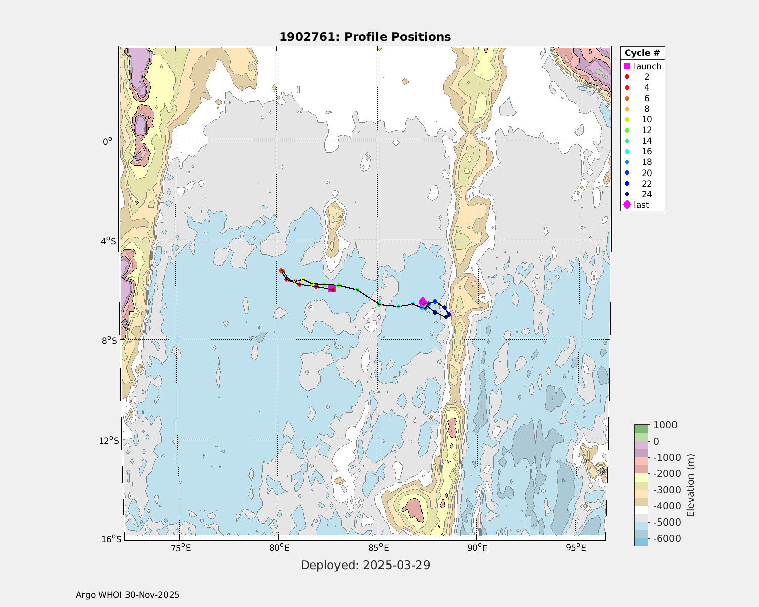 | WMO: #1902760 DAC: aoml PI: GREGORY C. JOHNSON NAVIS_EBR: #1610 SBE41CP: #19887 DRUCK_2900PSIA: #12394315 Altimeter Comparison (IFREMER) EuroArgo Link | ![]() |