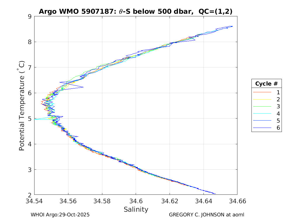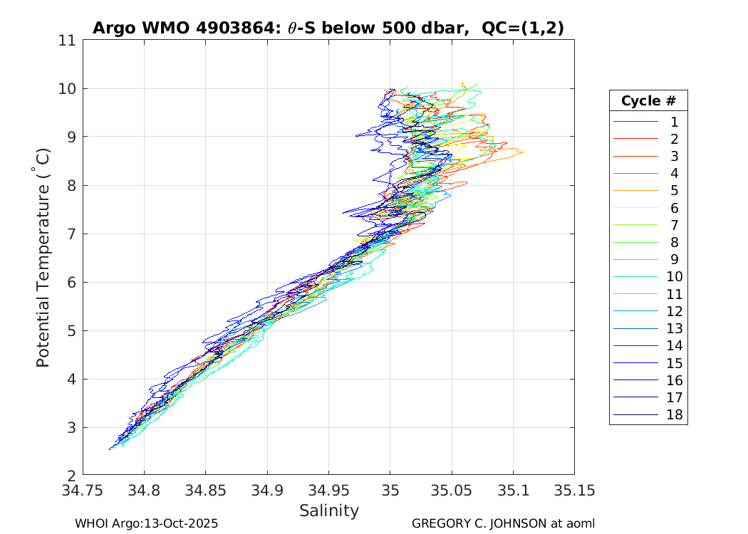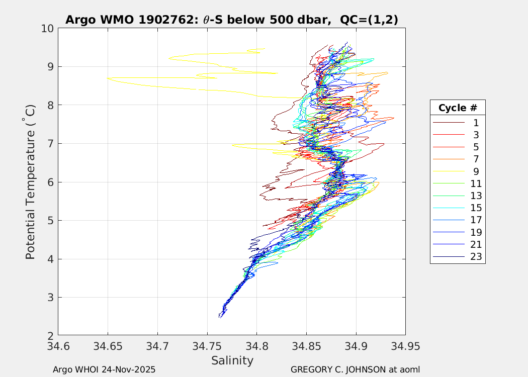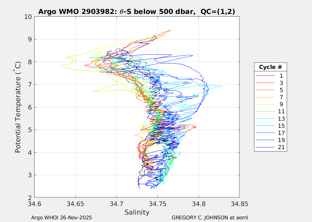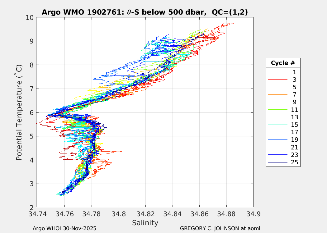 | WMO: #4903846 DAC: aoml PI: GREGORY C. JOHNSON SOLO_D MRV: #12102 SBE61: #5932 KISTLER_10153PSIA: #5831333 Altimeter Comparison (IFREMER) EuroArgo Link | ![]() |