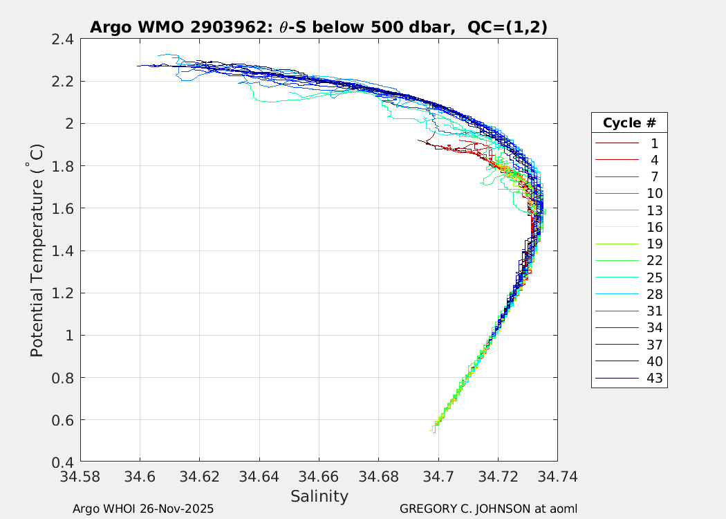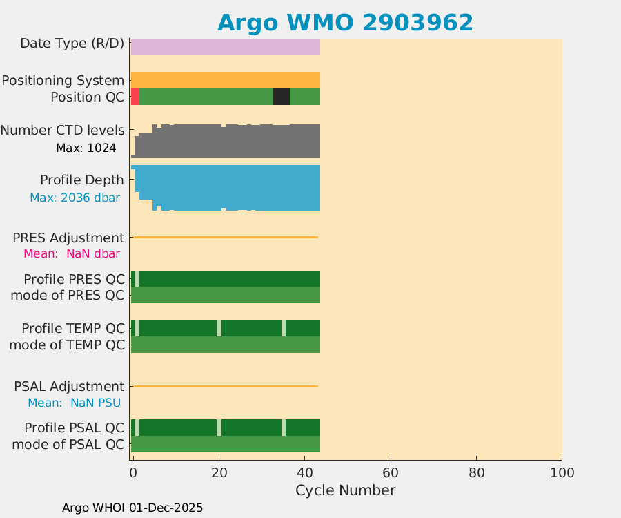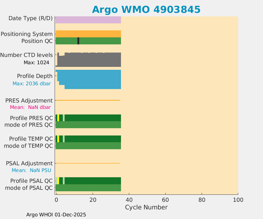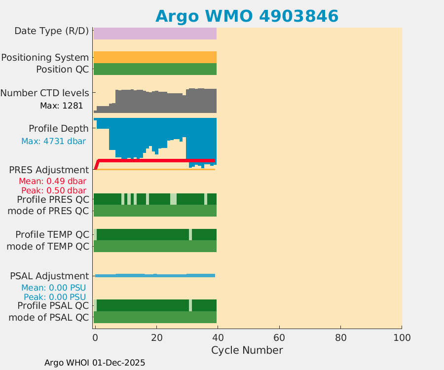 | WMO: #2903963 DAC: aoml PI: GREGORY C. JOHNSON ALTO: #11687 RBR_ARGO3: #213398 RBR_PRES_A: #213398 Altimeter Comparison (IFREMER) EuroArgo Link | n/a | n/a | ![]() |