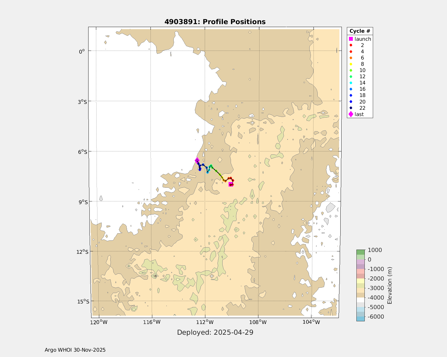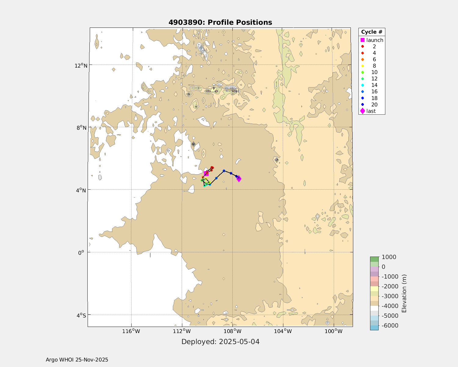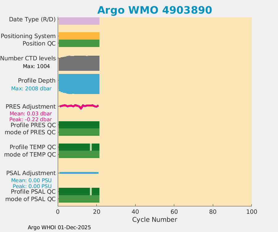 | WMO: #4903890 DAC: aoml PI: GREGORY C. JOHNSON NAVIS_EBR: #1698 SBE41CP: #20822 DRUCK_2900PSIA: #12537057 Altimeter Comparison (IFREMER) EuroArgo Link | ![]() |