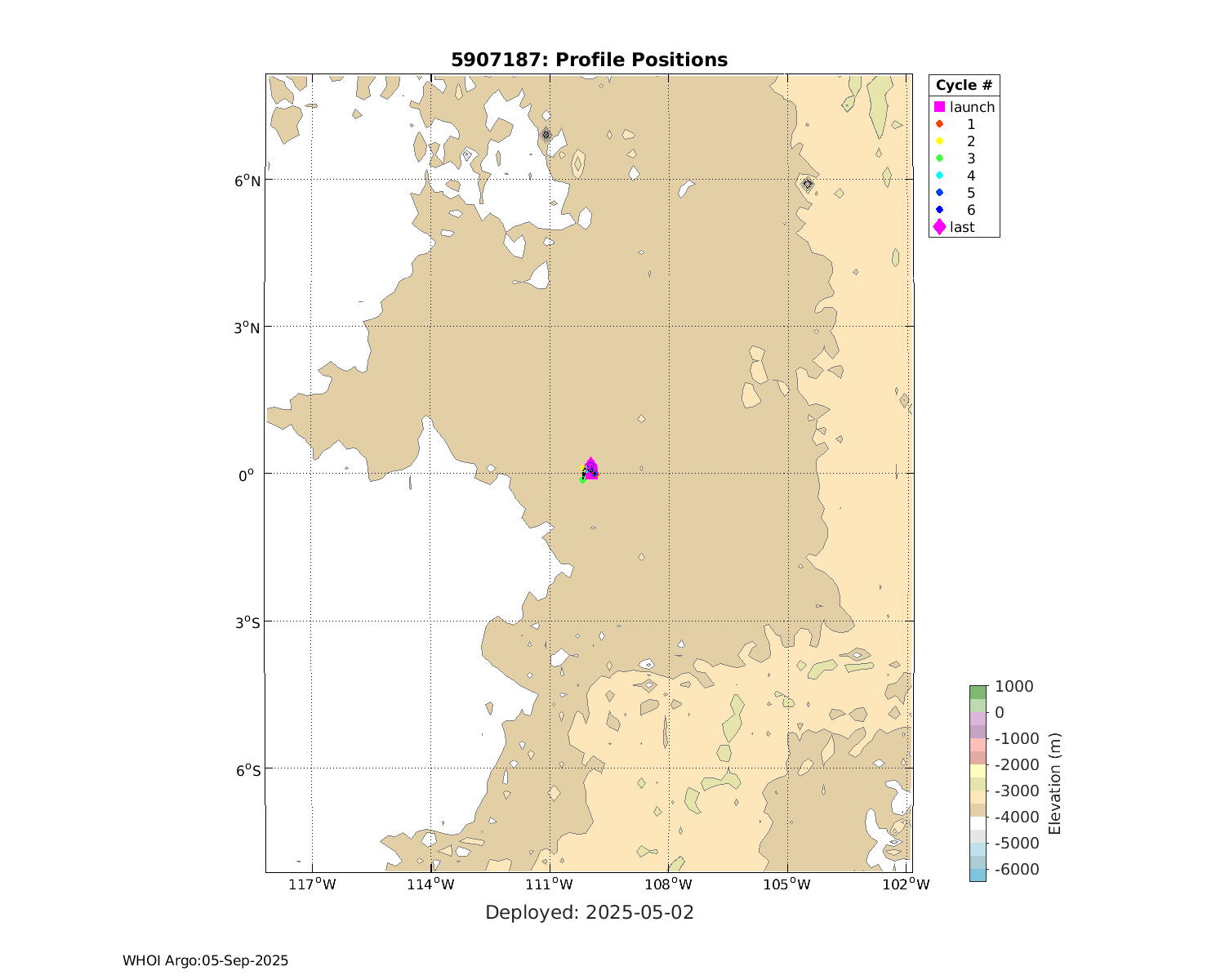 | WMO: #5907187 DAC: aoml PI: GREGORY C. JOHNSON NAVIS_EBR: #1684 SBE41CP: #20694 DRUCK_2900PSIA: #12426868 Altimeter Comparison (IFREMER) EuroArgo Link | ![]() |