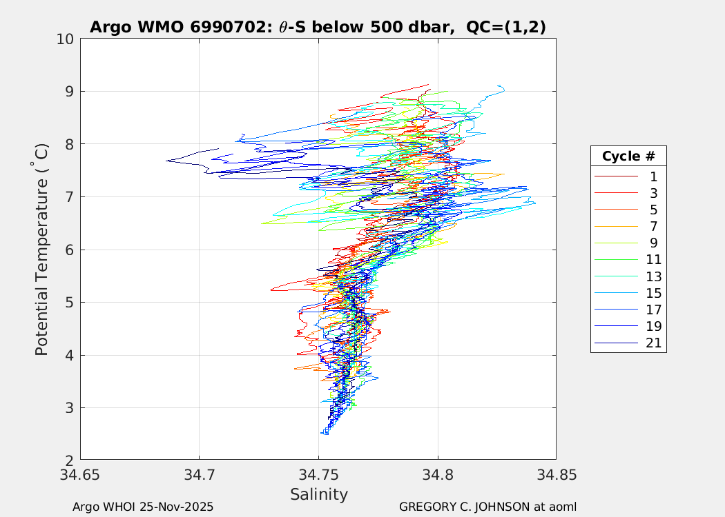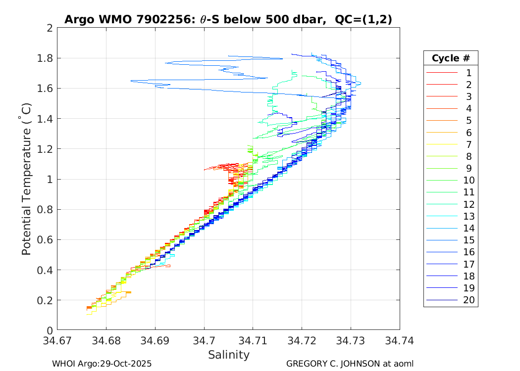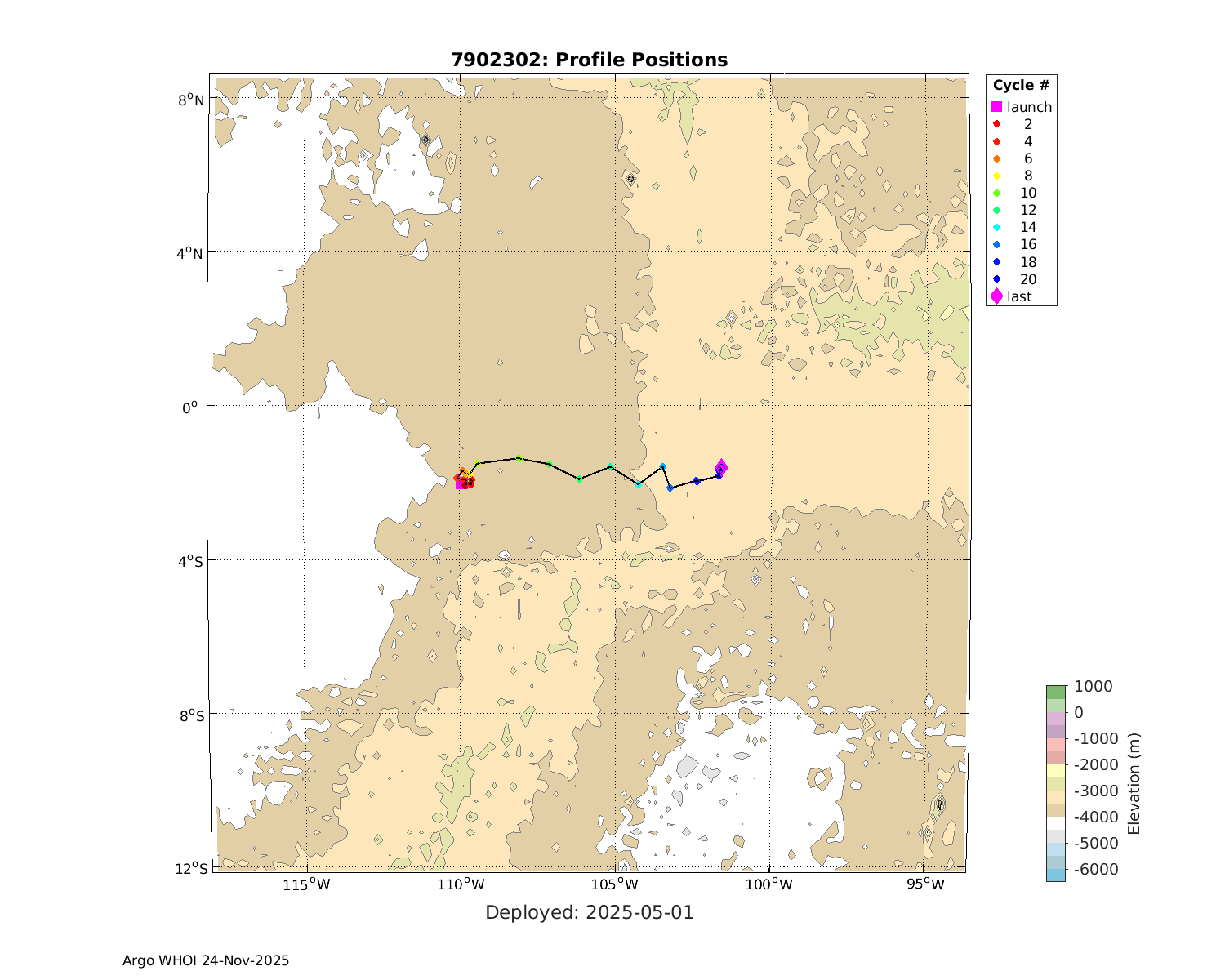 | WMO: #6990702 DAC: aoml PI: GREGORY C. JOHNSON NAVIS_EBR: #1612 SBE41CP: #20230 DRUCK_2900PSIA: #12439105 Altimeter Comparison (IFREMER) EuroArgo Link | ![]() |