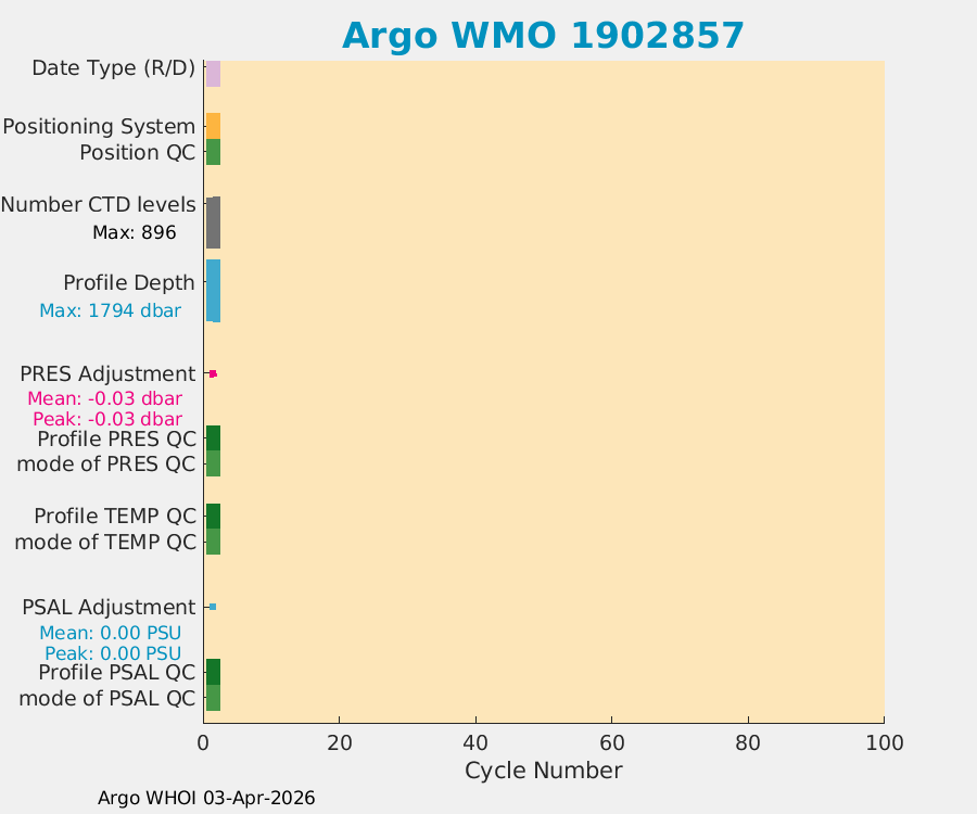 | WMO: #1902857 DAC: aoml PI: ANDREA FASSBENDER NAVIS_EBR: #1727 SBE41CP: #21569 DRUCK_2900PSIA: #13151067 Altimeter Comparison (IFREMER) EuroArgo Link | n/a | n/a | ![]() |