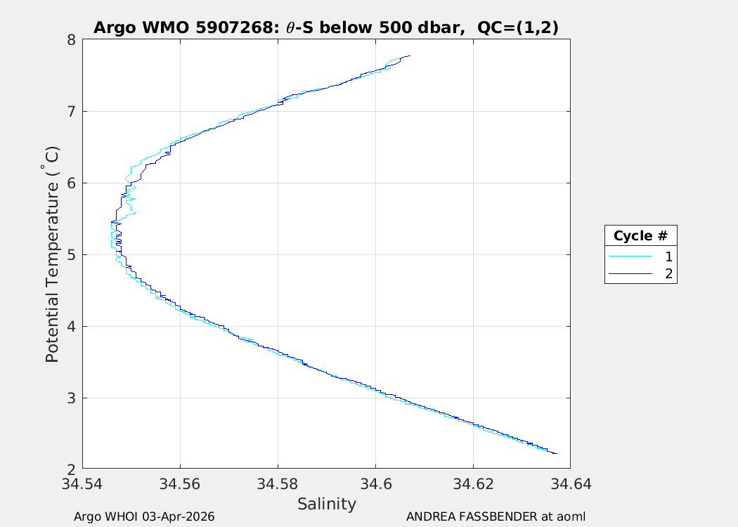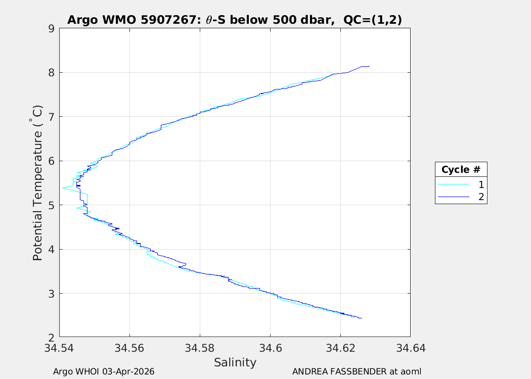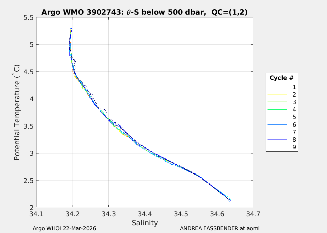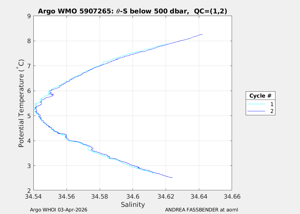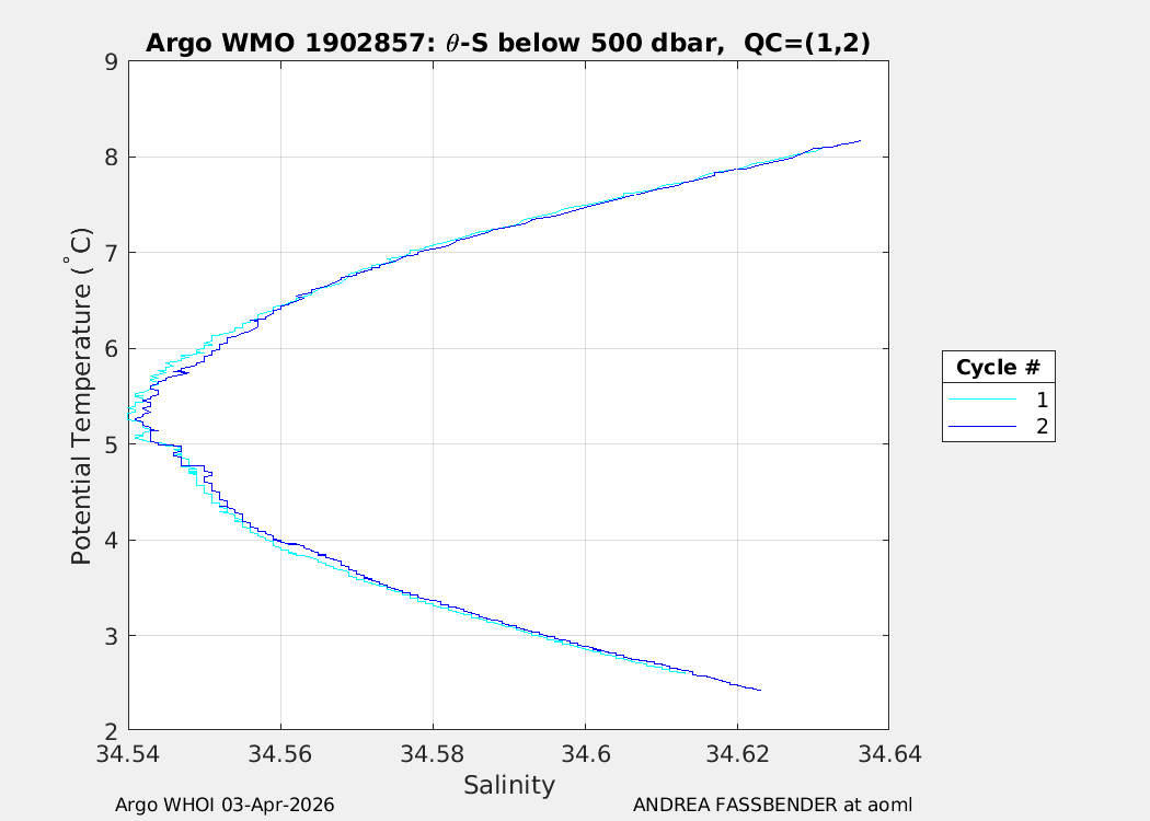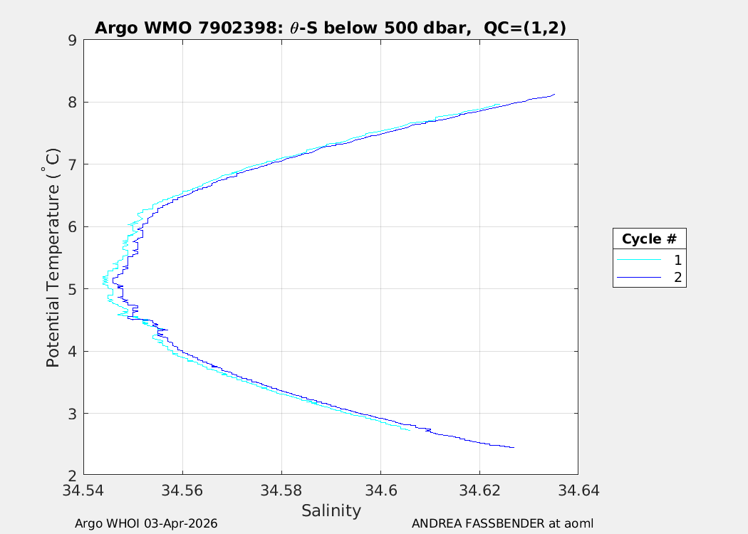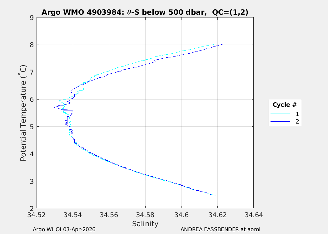 | WMO: #3902743 DAC: aoml PI: ANDREA FASSBENDER S2-A: #7959 SBE41CP: #19806 DRUCK_2900PSIA: #12328308 Altimeter Comparison (IFREMER) EuroArgo Link | ![]() |
