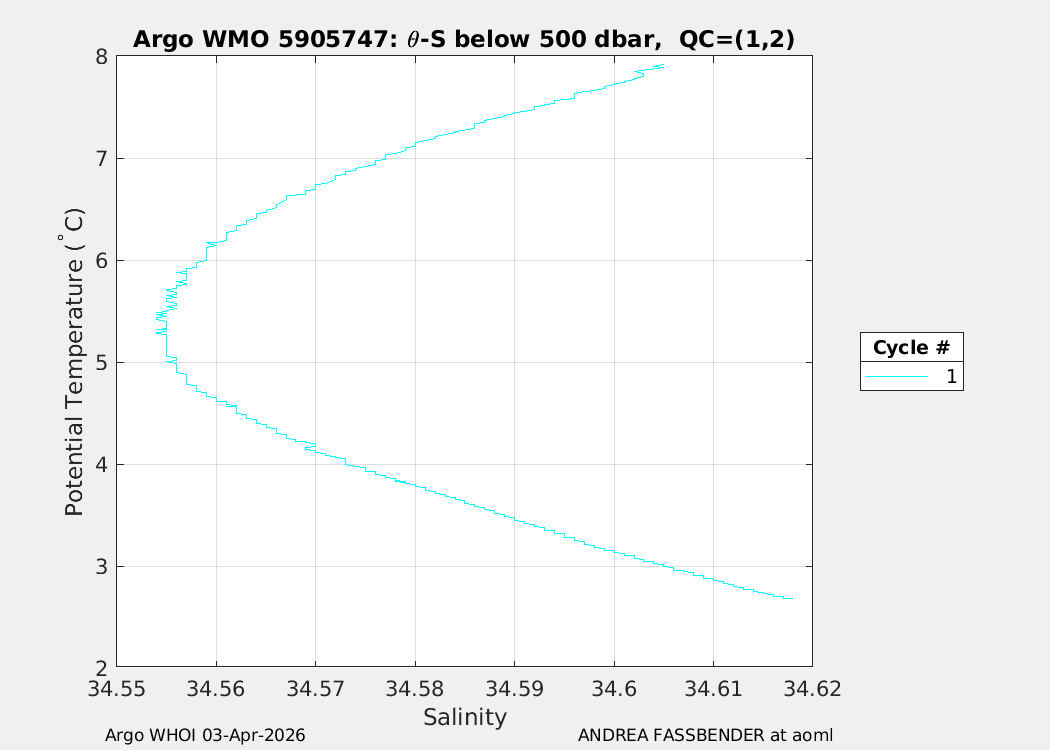 | WMO: #5905747 DAC: aoml PI: ANDREA FASSBENDER NAVIS_EBR: #1723 SBE41CP: #21514 DRUCK_2900PSIA: #13141053 Altimeter Comparison (IFREMER) EuroArgo Link | n/a | n/a | ![]() |