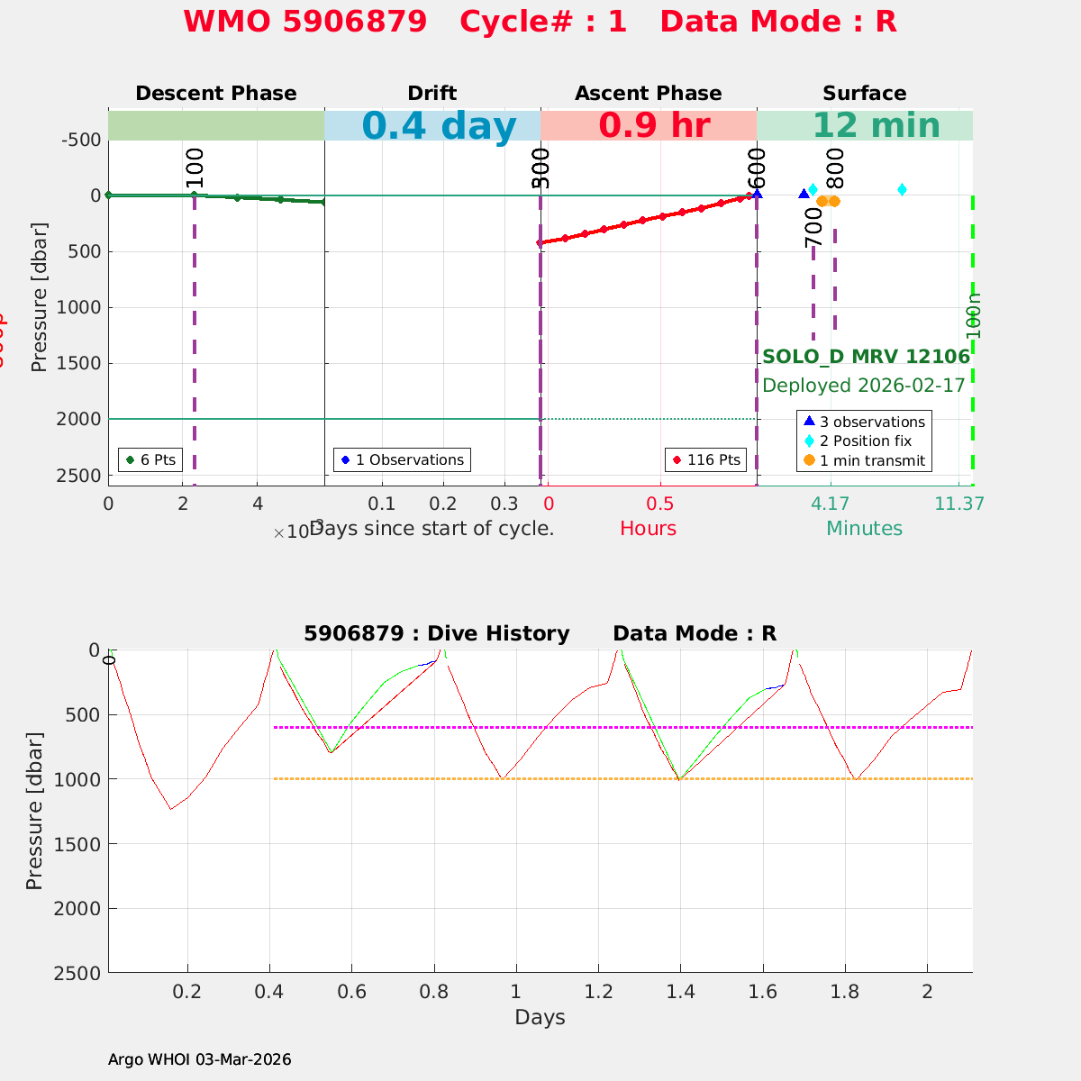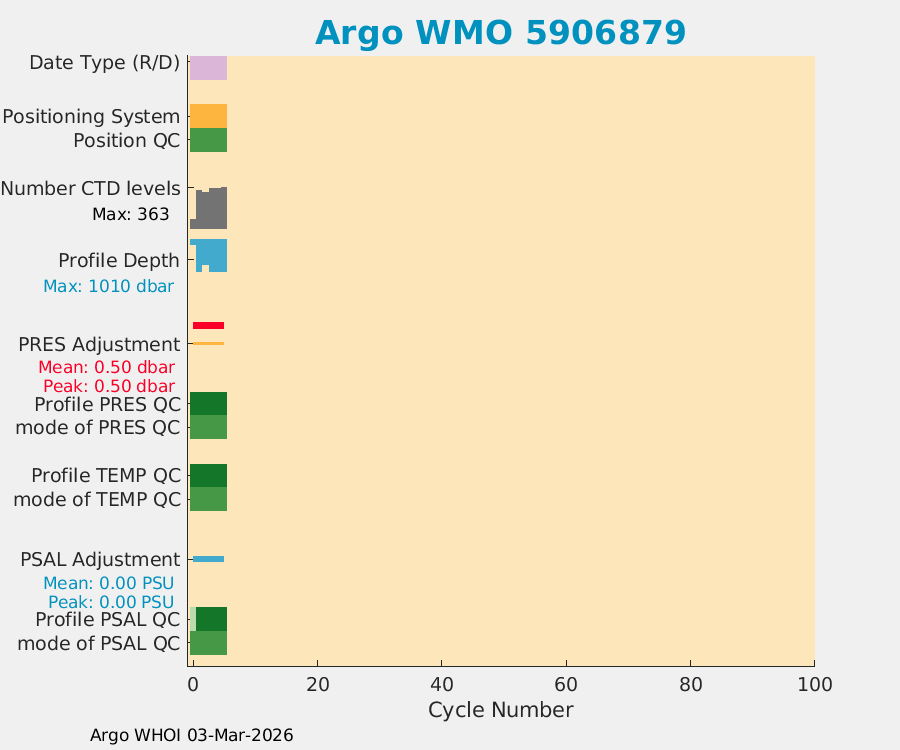 | WMO: #5906879 DAC: aoml PI: ANDREA FASSBENDER SOLO_D MRV: #12106 SBE61: #6138 KISTLER_10153PSIA: #6230213 Altimeter Comparison (IFREMER) EuroArgo Link | n/a | n/a | ![]() |