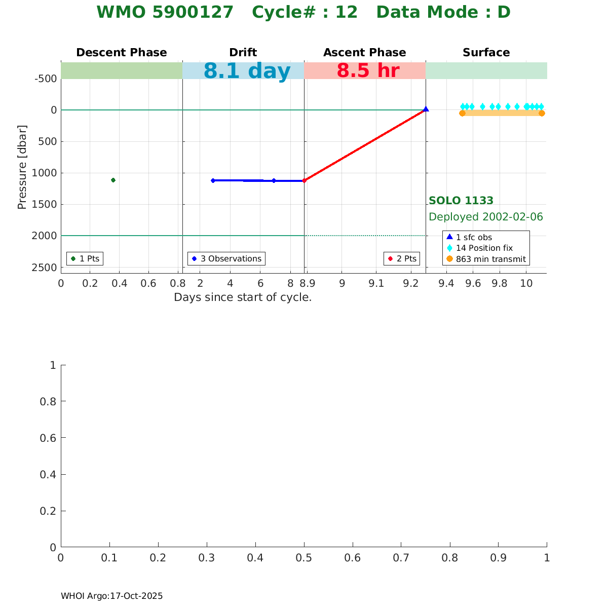 | WMO: #5900204 DAC: aoml PI: DEAN ROEMMICH SOLO: #2133 AMETEK_3000PSIA: #2657714211 SBE41CP_V1.5: #262 Altimeter Comparison (IFREMER) EuroArgo Link | ![]() |