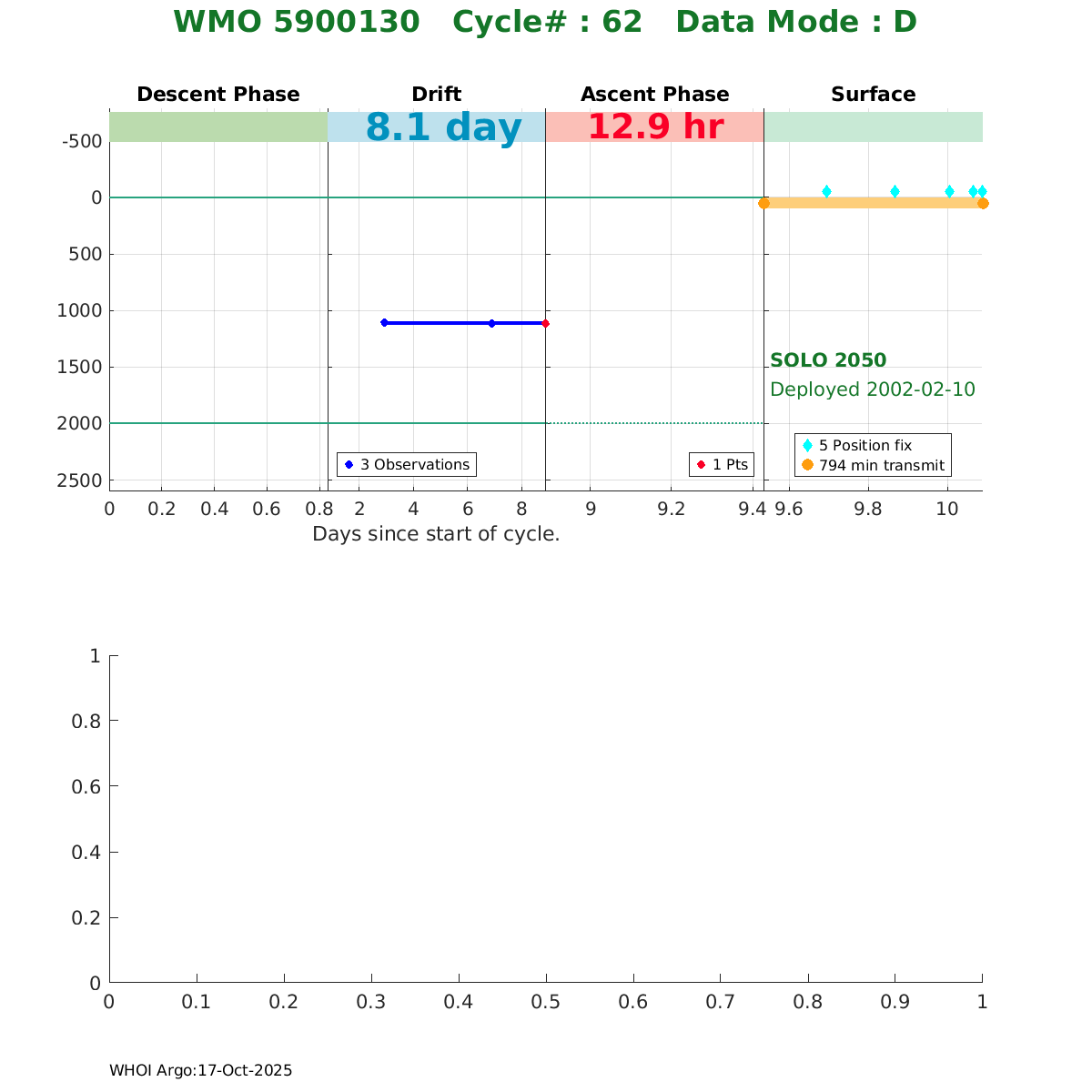 | WMO: #5900130 DAC: aoml PI: DEAN ROEMMICH SOLO: #2050 AMETEK_3000PSIA: #2657714118 SBE41CP_V1.5: #157 Altimeter Comparison (IFREMER) EuroArgo Link | ![]() |