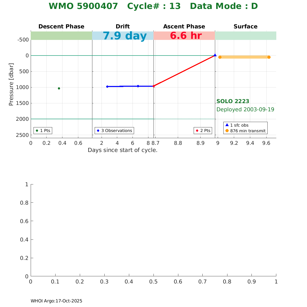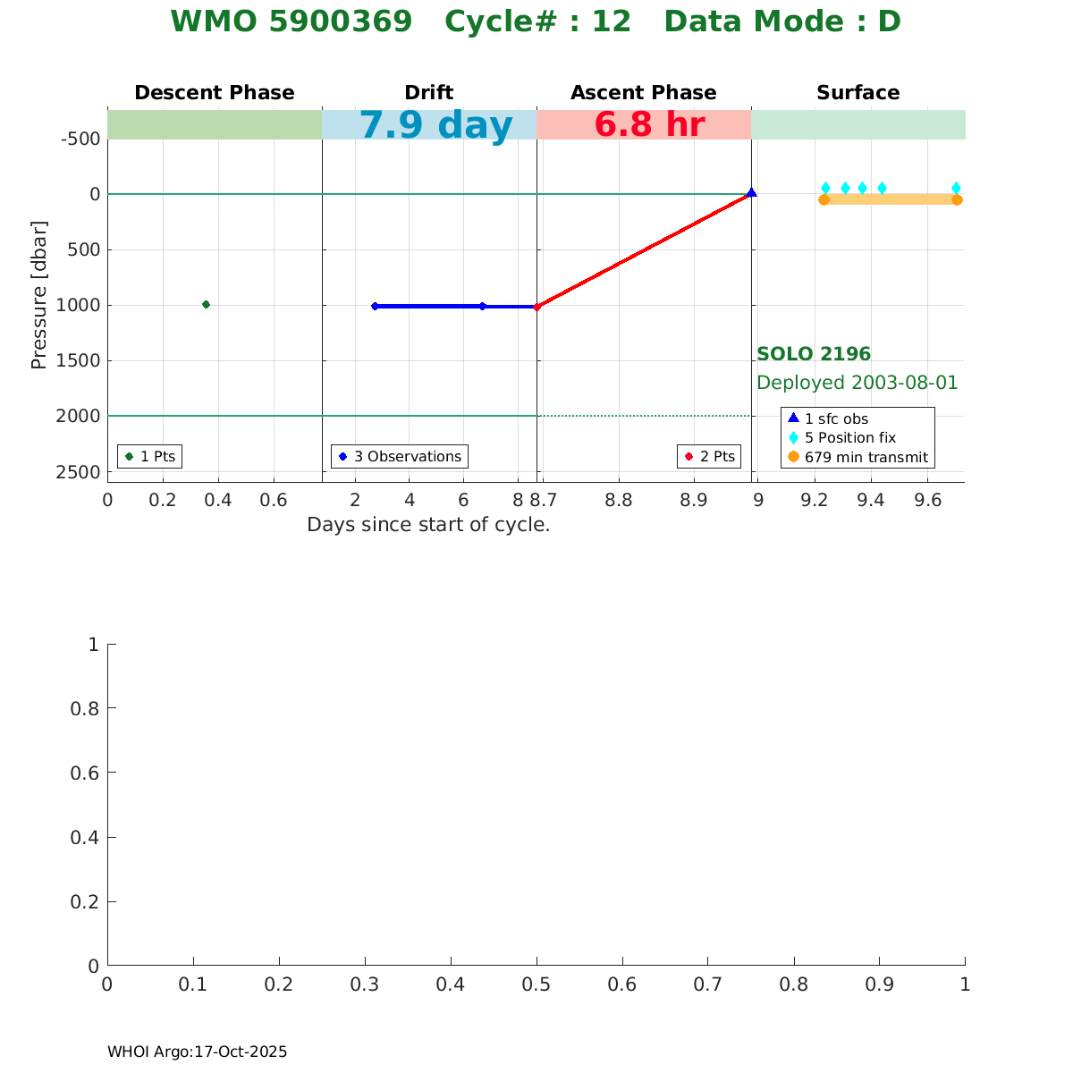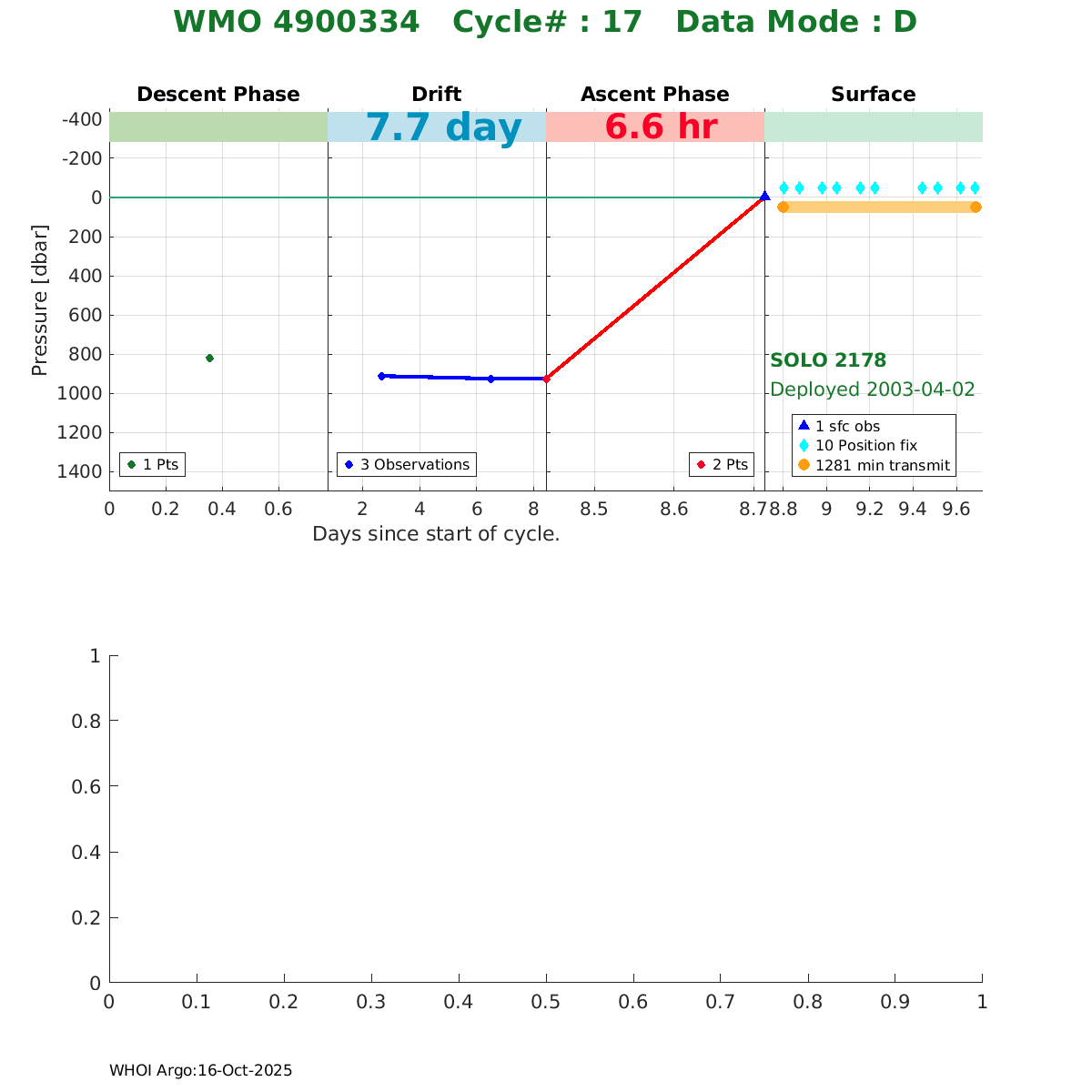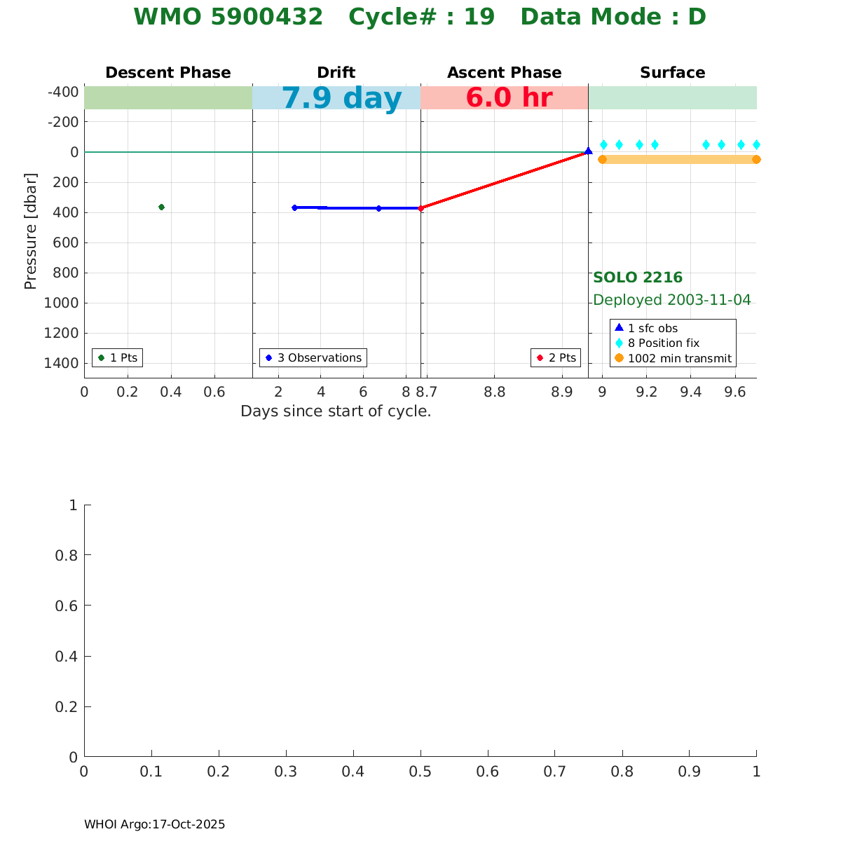 | WMO: #4900331 DAC: aoml PI: DEAN ROEMMICH SOLO: #2175 AMETEK_3000PSIA: #2657714113 SBE41CP_V1.5: #153 Altimeter Comparison (IFREMER) EuroArgo Link | ![]() |