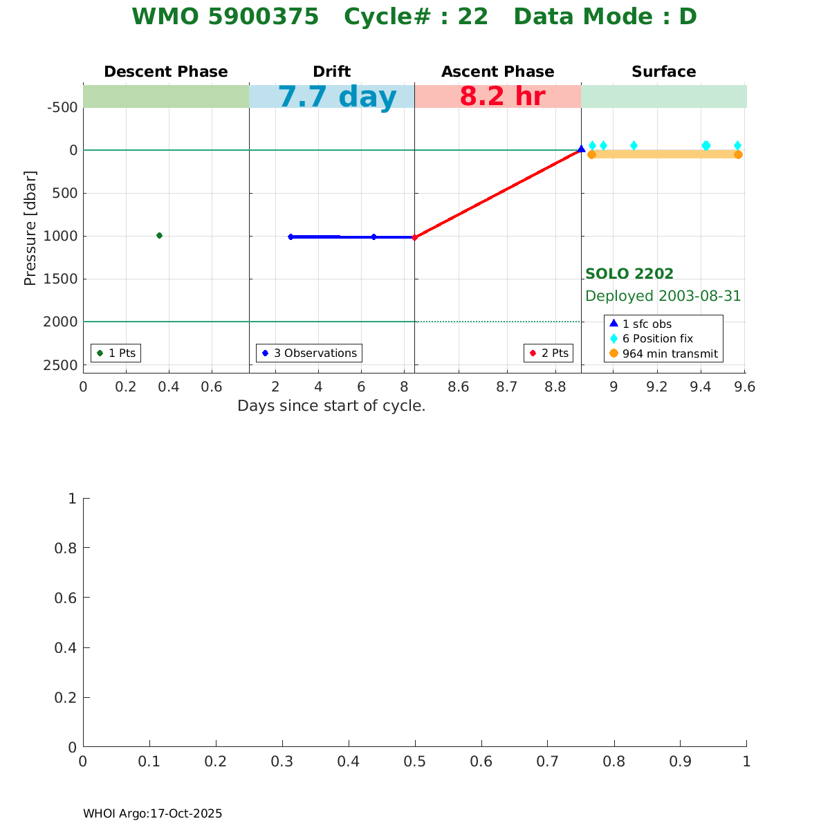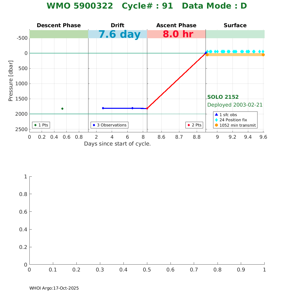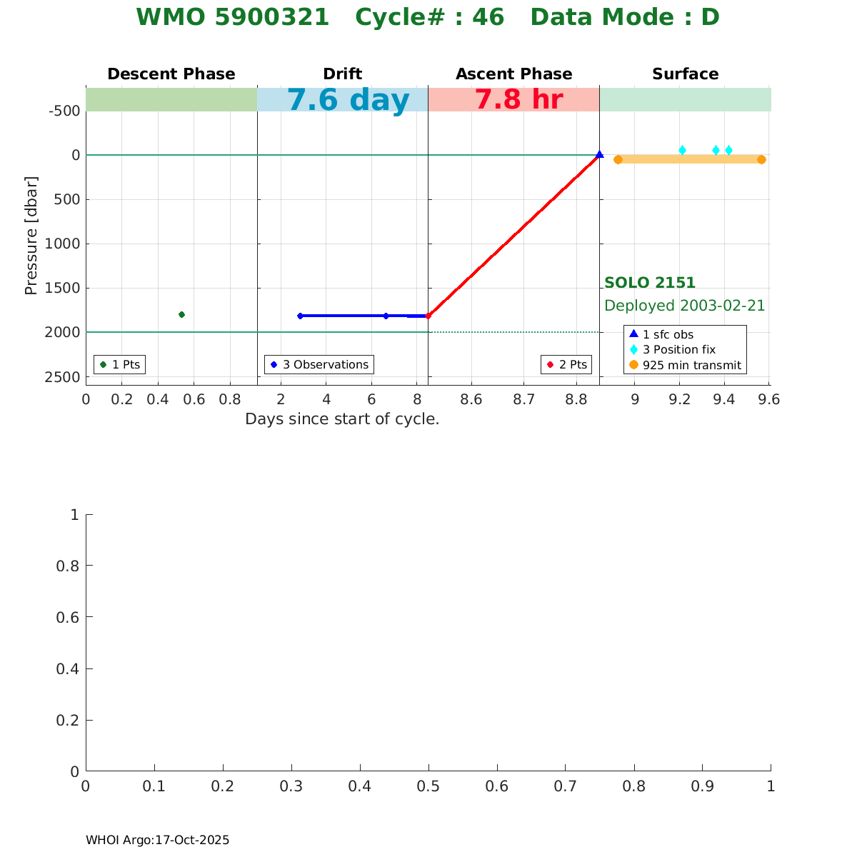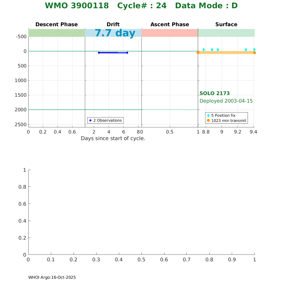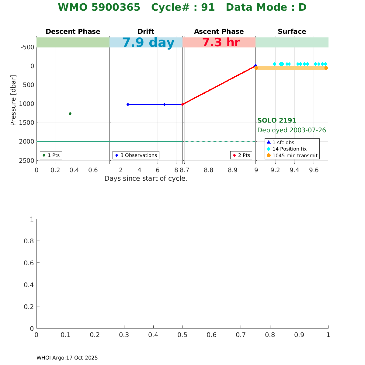 | WMO: #4900331 DAC: aoml PI: DEAN ROEMMICH SOLO: #2175 AMETEK_3000PSIA: #2657714113 SBE41CP_V1.5: #153 Altimeter Comparison (IFREMER) EuroArgo Link | ![]() |