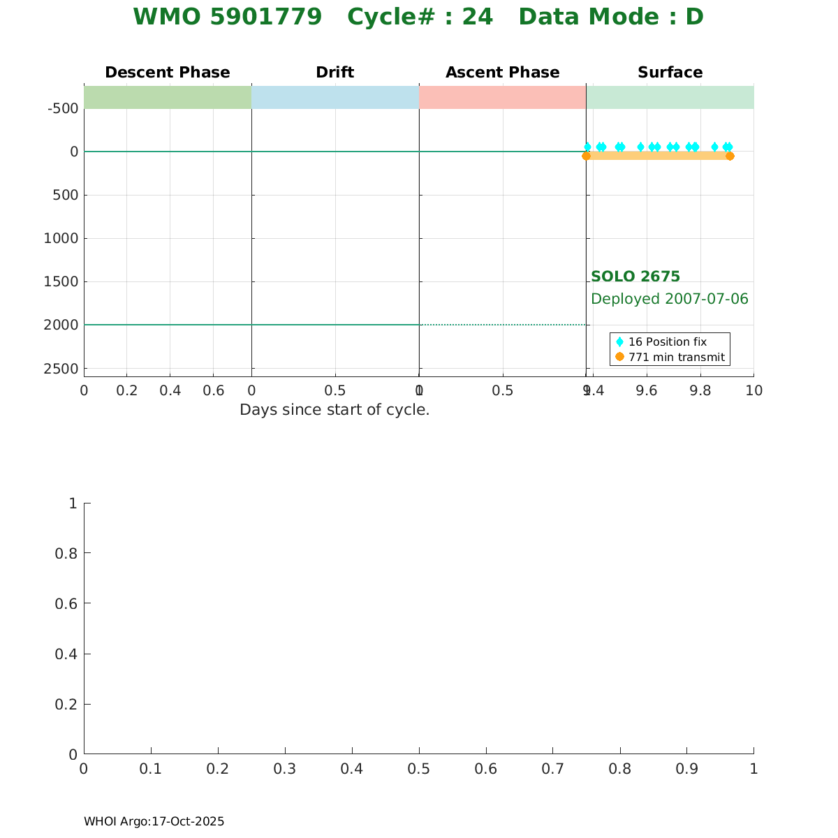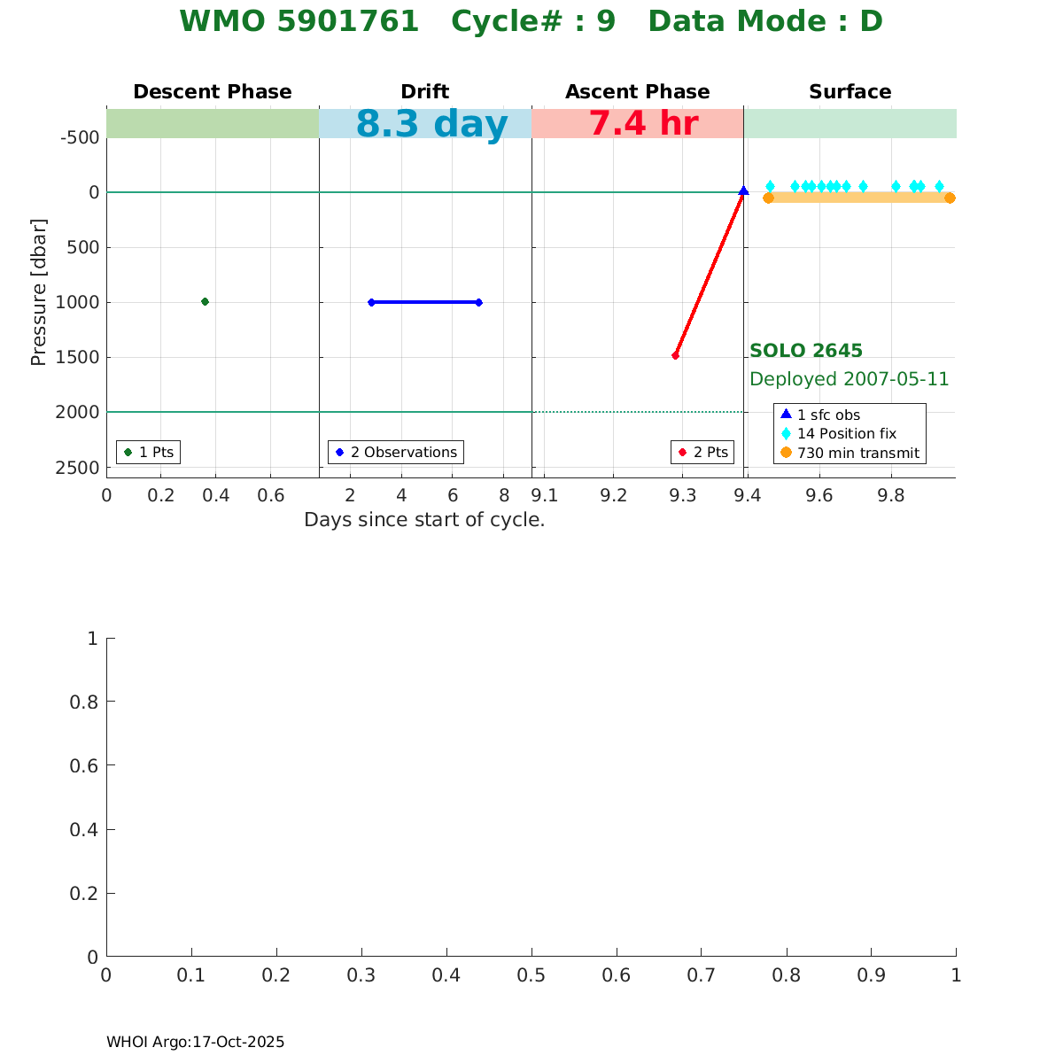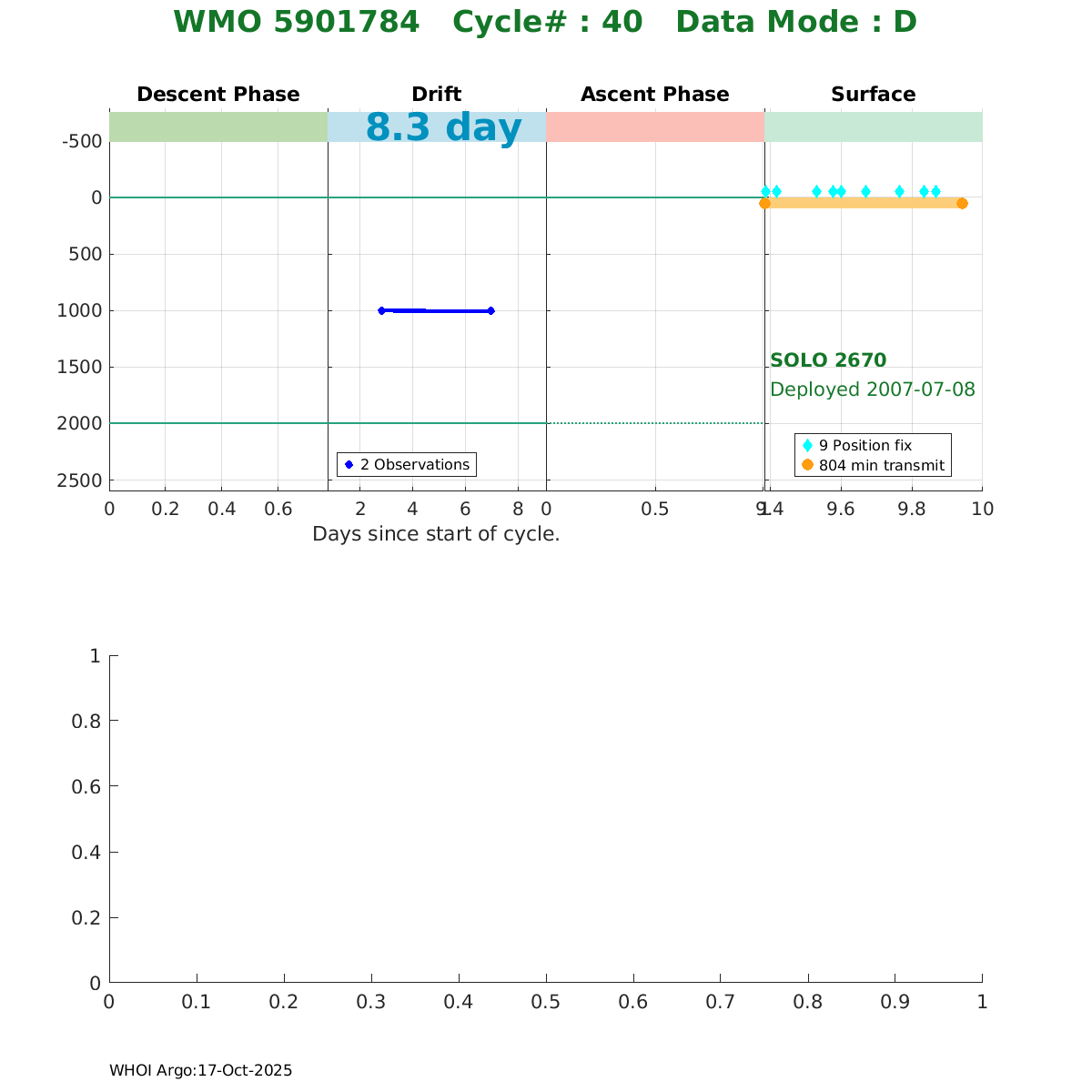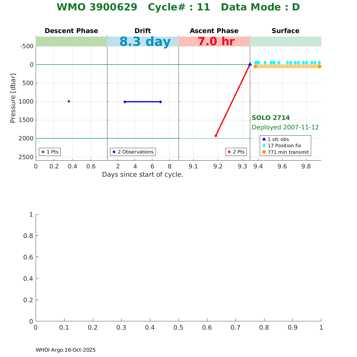 | WMO: #5901827 DAC: aoml PI: DEAN ROEMMICH SOLO: #2700 DRUCK_2900PSIA: #2385247 SBE41CP_V2: #1715 Altimeter Comparison (IFREMER) EuroArgo Link | n/a | n/a | ![]() |