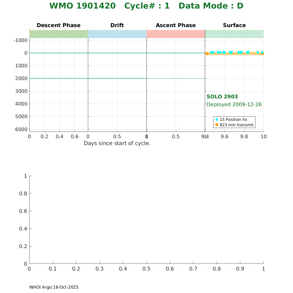 | WMO: #1901420 DAC: aoml PI: DEAN ROEMMICH SOLO: #2903 DRUCK_2900PSIA: #2911540 SBE41CP_V3: #2466 Altimeter Comparison (IFREMER) EuroArgo Link | n/a | n/a | ![]() |