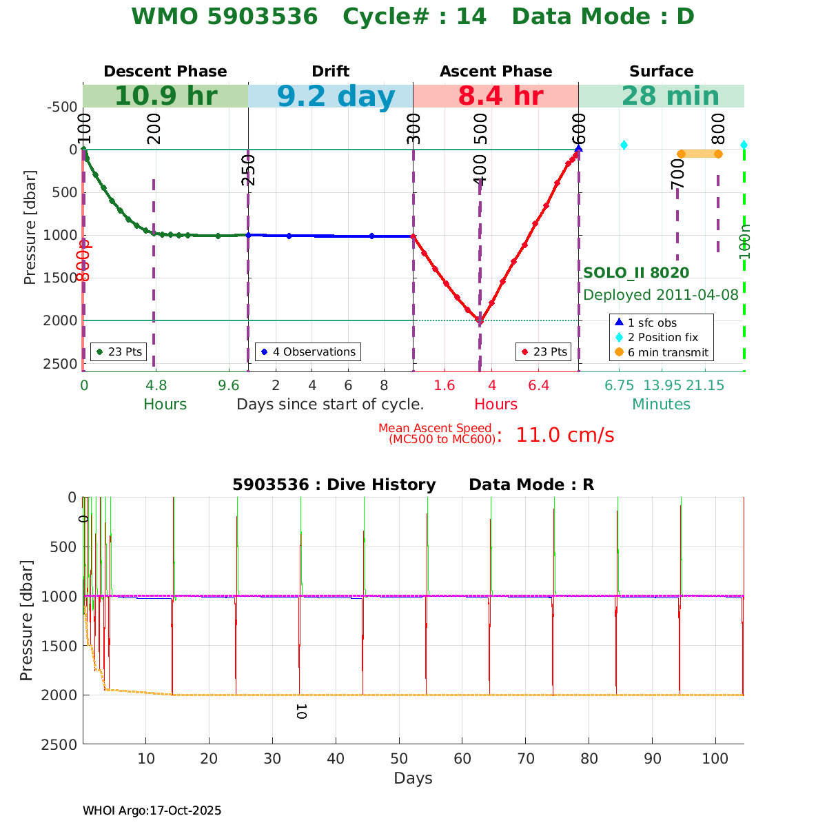 | WMO: #3901018 DAC: aoml PI: DEAN ROEMMICH SOLO_II: #8046 DRUCK_2900PSIA: #3258818 SBE41CP_V3.0a: #3351 Altimeter Comparison (IFREMER) EuroArgo Link | ![]() |