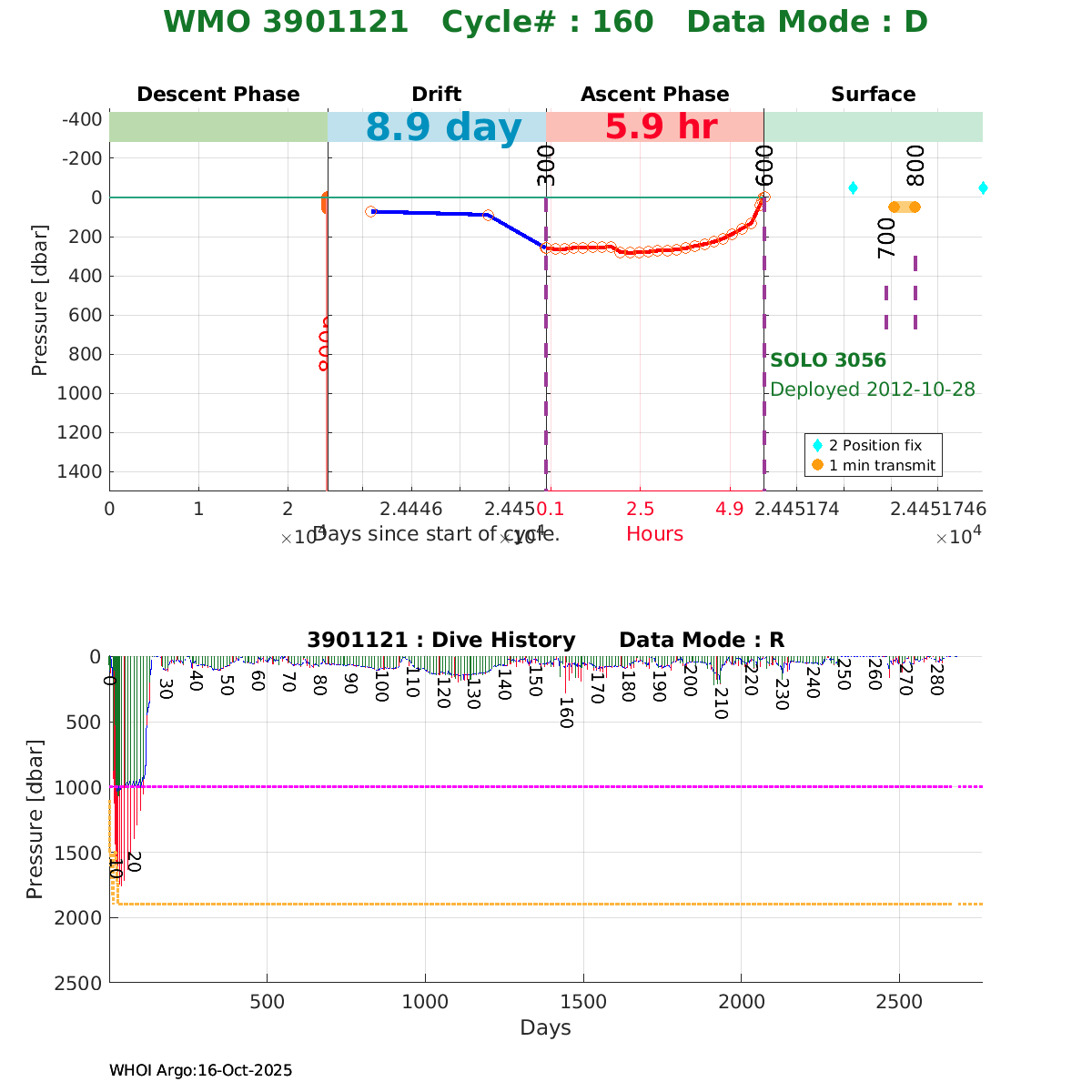 | WMO: #5903881 DAC: aoml PI: DEAN ROEMMICH SOLO: #3041 DRUCK_2900PSIA: #3246180 SBE41CP_V3.0a: #3690 Altimeter Comparison (IFREMER) EuroArgo Link | ![]() |