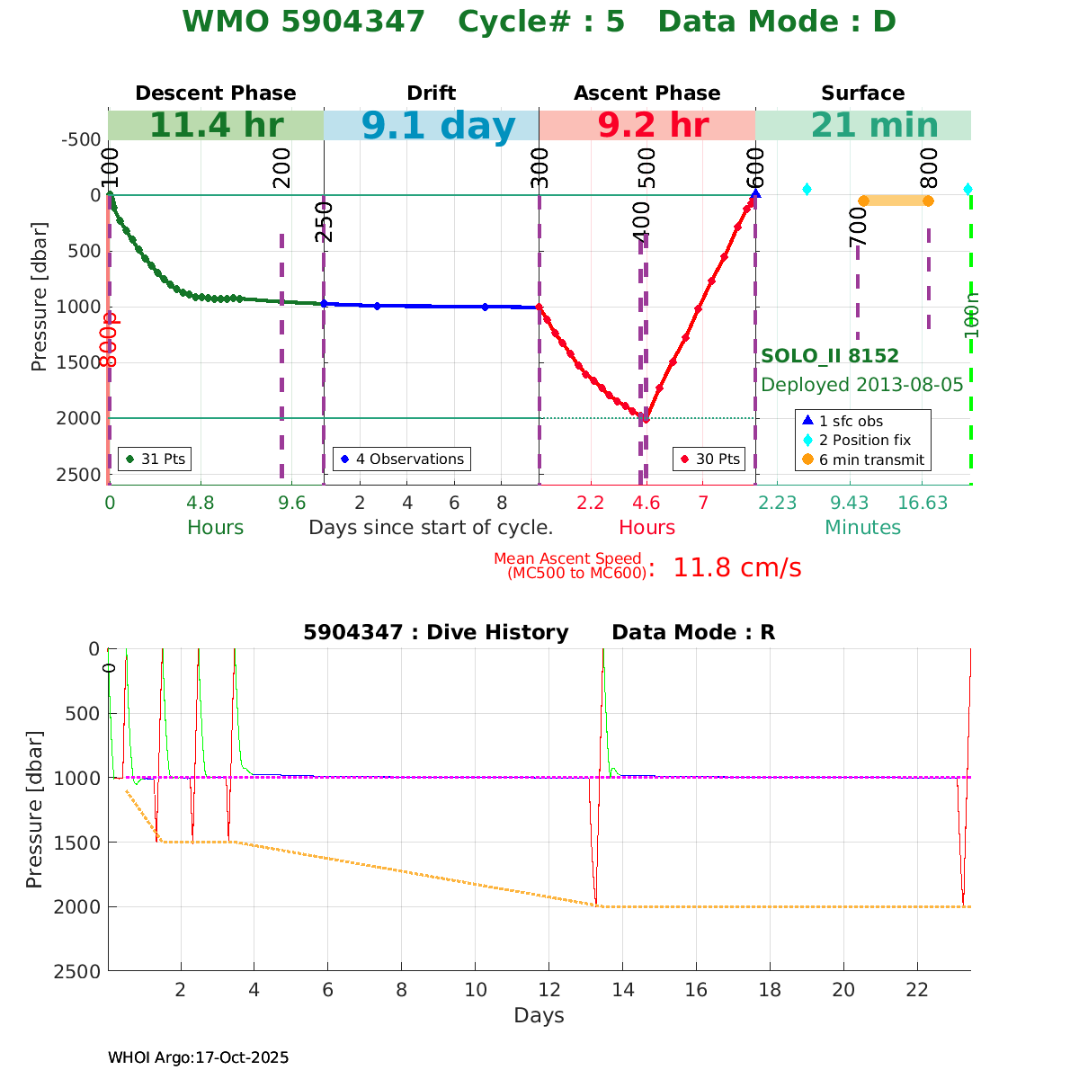 | WMO: #5904346 DAC: aoml PI: Dean ROEMMICH SOLO_II: #8151 DRUCK_2900PSIA: #3412690 SBE41CP: #4438 Altimeter Comparison (IFREMER) EuroArgo Link | n/a | n/a | ![]() |
