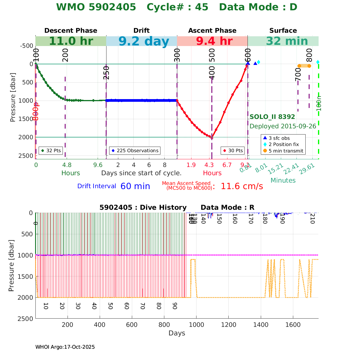 | WMO: #5902414 DAC: aoml PI: Dean ROEMMICH SOLO_II: #8401 KISTLER_2900PSIA: #4629859 SBE41CP: #6830 Altimeter Comparison (IFREMER) EuroArgo Link | ![]() |