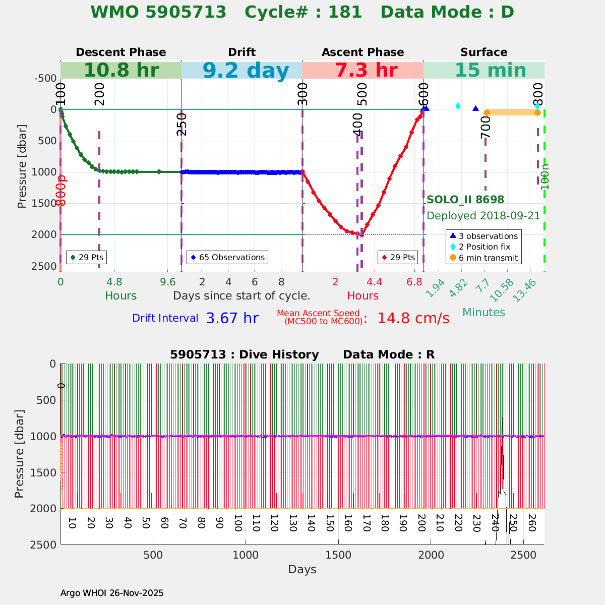 | WMO: #5905721 DAC: aoml PI: Dean ROEMMICH SOLO_II: #8706 DRUCK_2900PSIA: #10787128 SBE41CP: #10698 Altimeter Comparison (IFREMER) EuroArgo Link | ![]() |