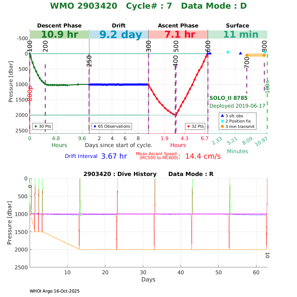 | WMO: #2903420 DAC: aoml PI: Dean ROEMMICH SOLO_II: #8785 DRUCK_2900PSIA: #10300516 SBE41CP: #8727 Altimeter Comparison (IFREMER) EuroArgo Link | ![]() |
