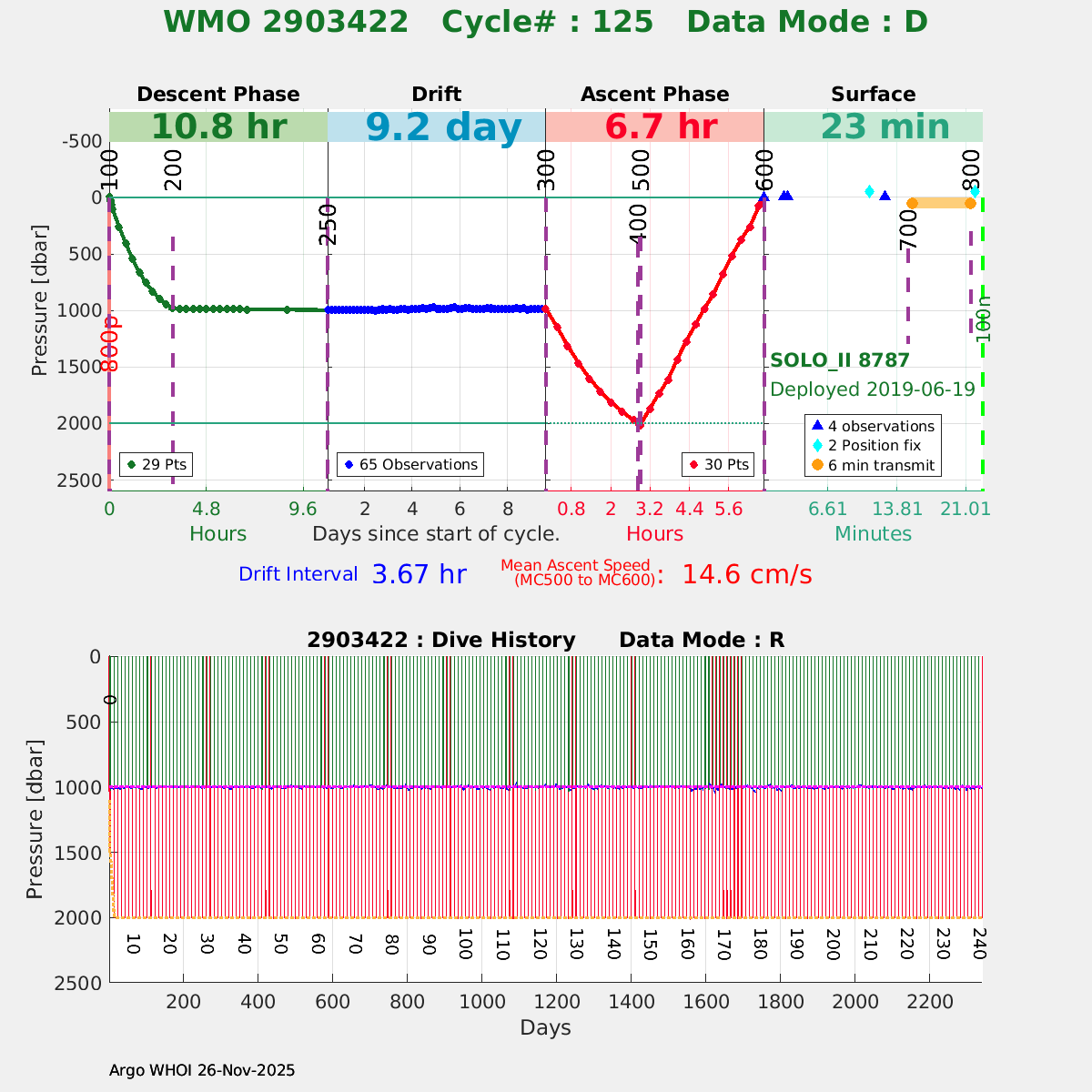 | WMO: #4903012 DAC: aoml PI: Dean ROEMMICH SOLO_II: #8760 DRUCK_2900PSIA: #10936055 SBE41CP: #10869 Altimeter Comparison (IFREMER) EuroArgo Link | ![]() |