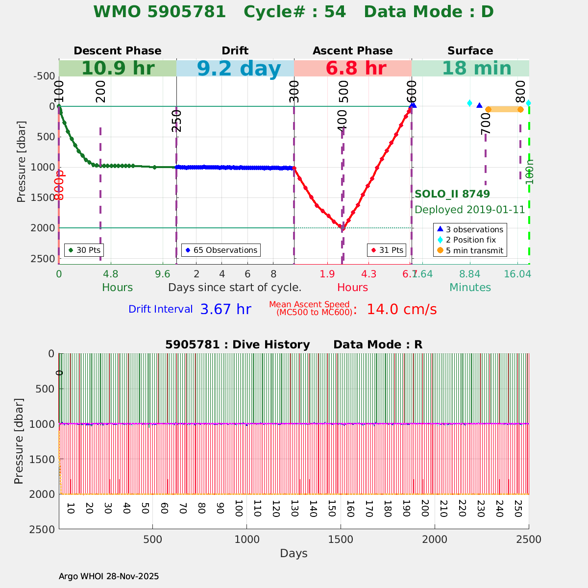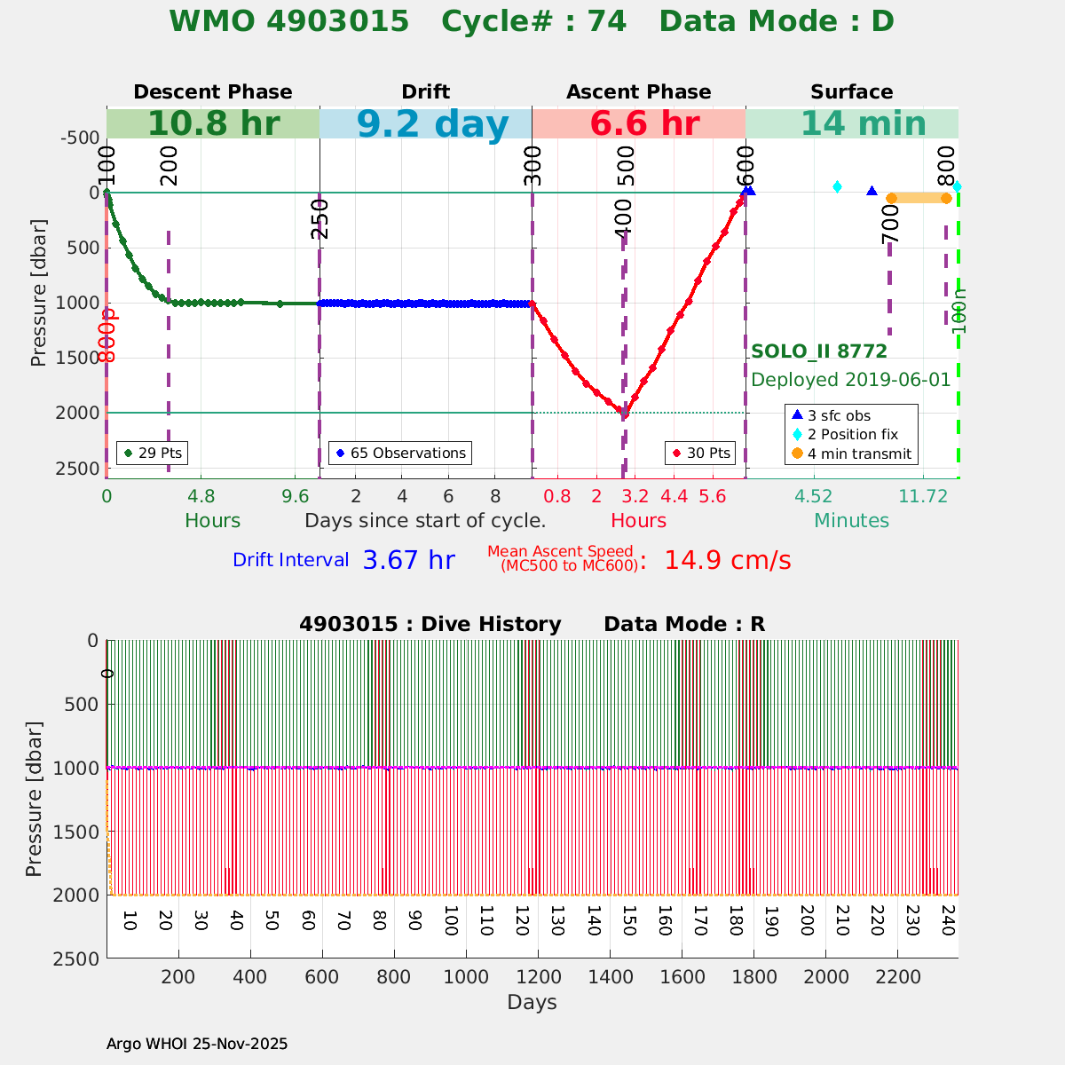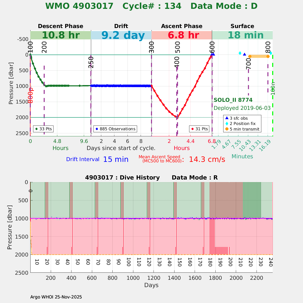 | WMO: #4903019 DAC: aoml PI: Dean ROEMMICH SOLO_II: #8776 DRUCK_2900PSIA: #10787155 SBE41CP: #10706 Altimeter Comparison (IFREMER) EuroArgo Link | ![]() |