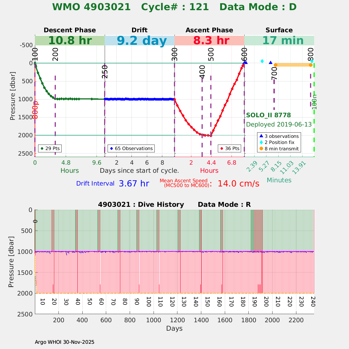 | WMO: #4903021 DAC: aoml PI: Dean ROEMMICH SOLO_II: #8778 DRUCK_2900PSIA: #10918041 SBE41CP: #10856 Altimeter Comparison (IFREMER) EuroArgo Link | ![]() |