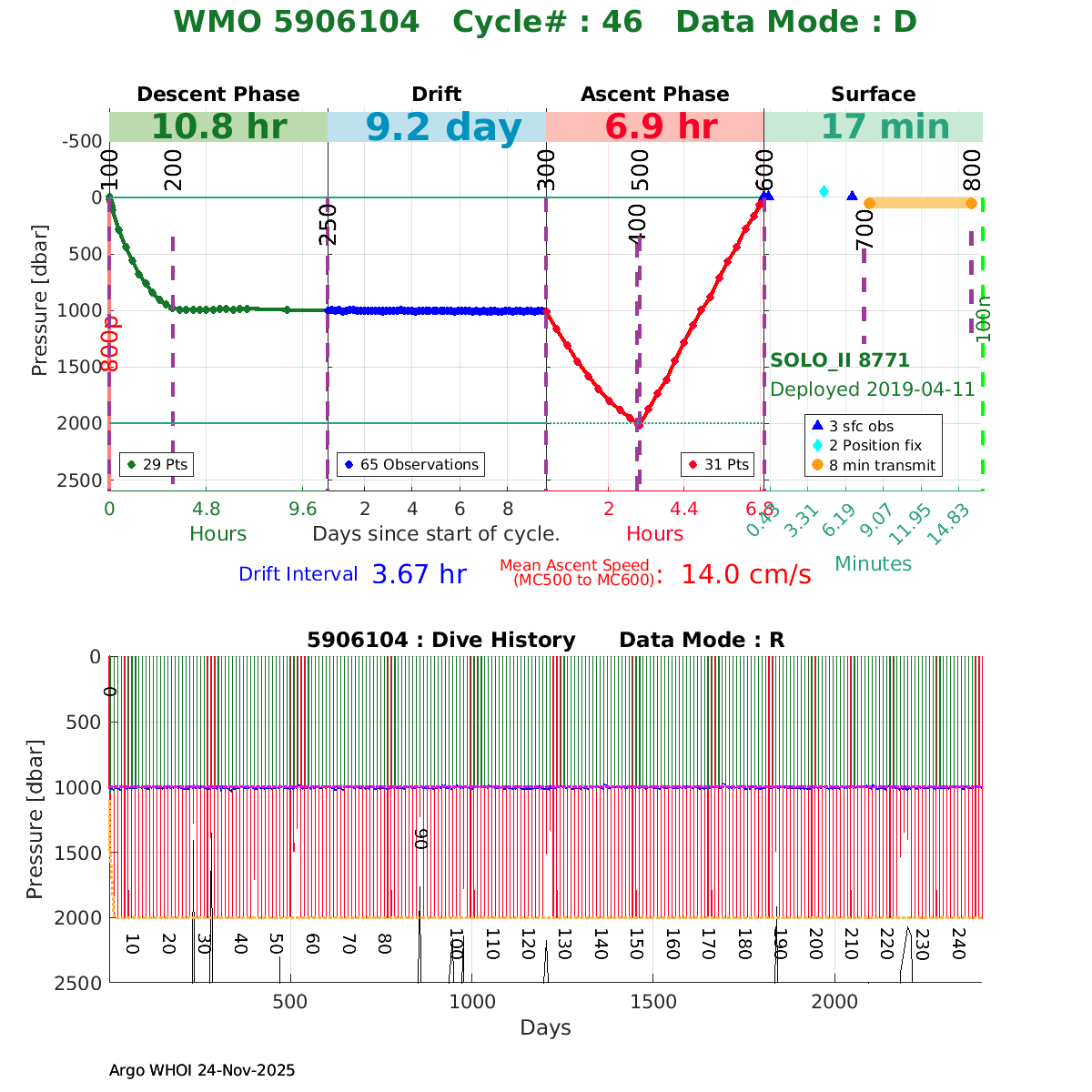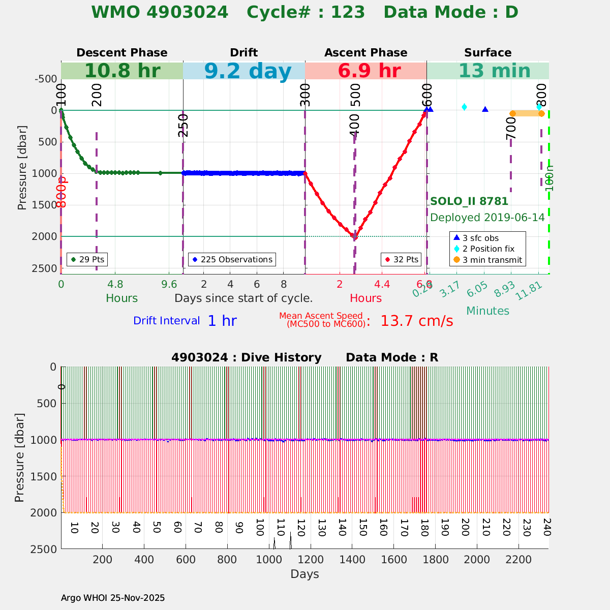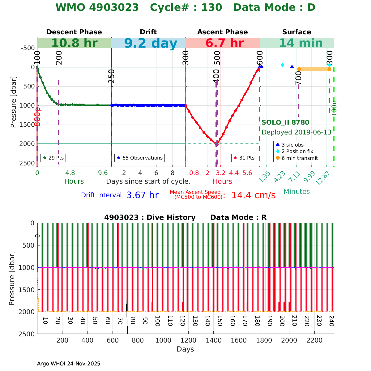 | WMO: #4903024 DAC: aoml PI: Dean ROEMMICH SOLO_II: #8781 DRUCK_2900PSIA: #10727124 SBE41CP: #10867 Altimeter Comparison (IFREMER) EuroArgo Link | ![]() |